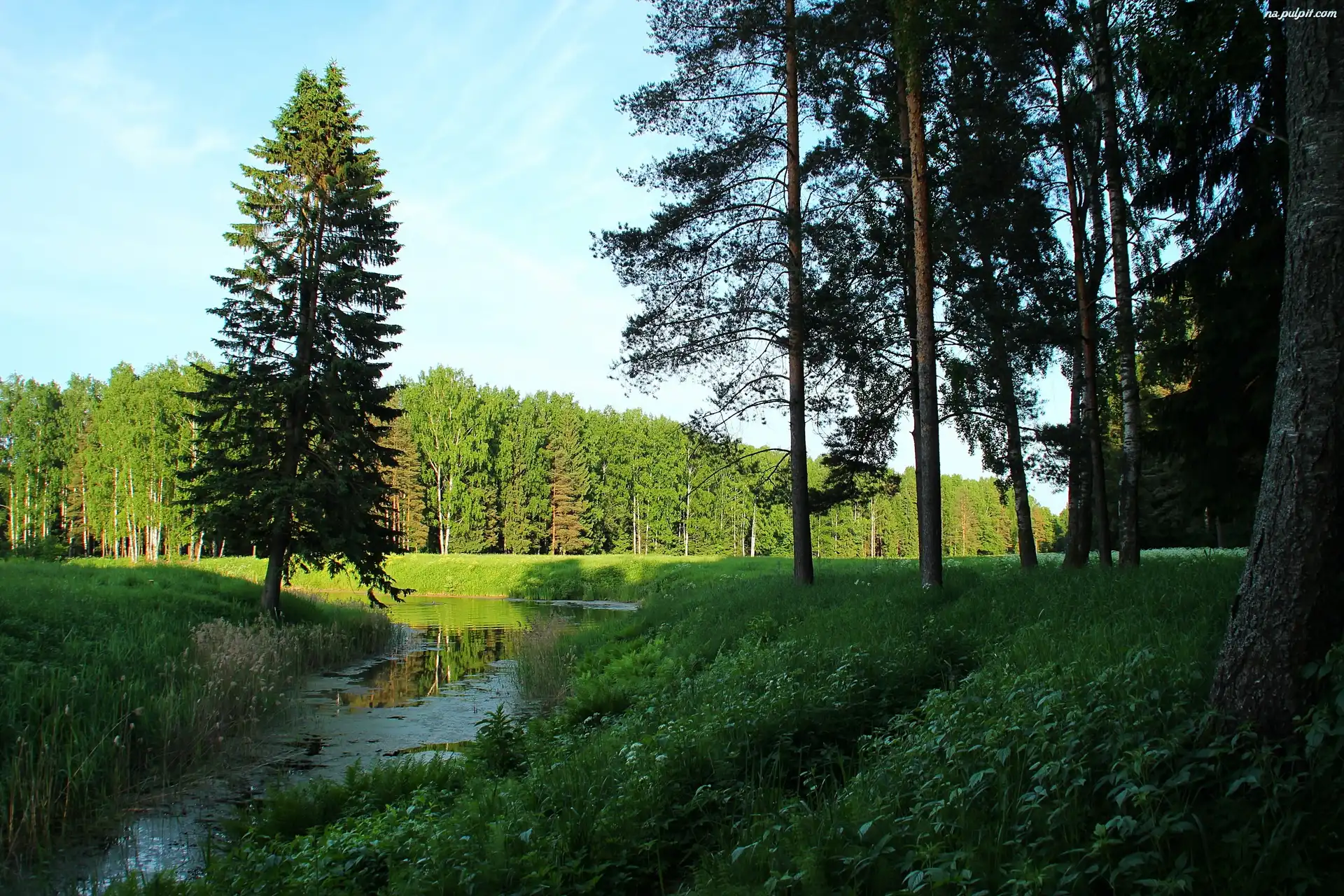 Lato, Rzeczka, Las, Zieleń Na Pulpit