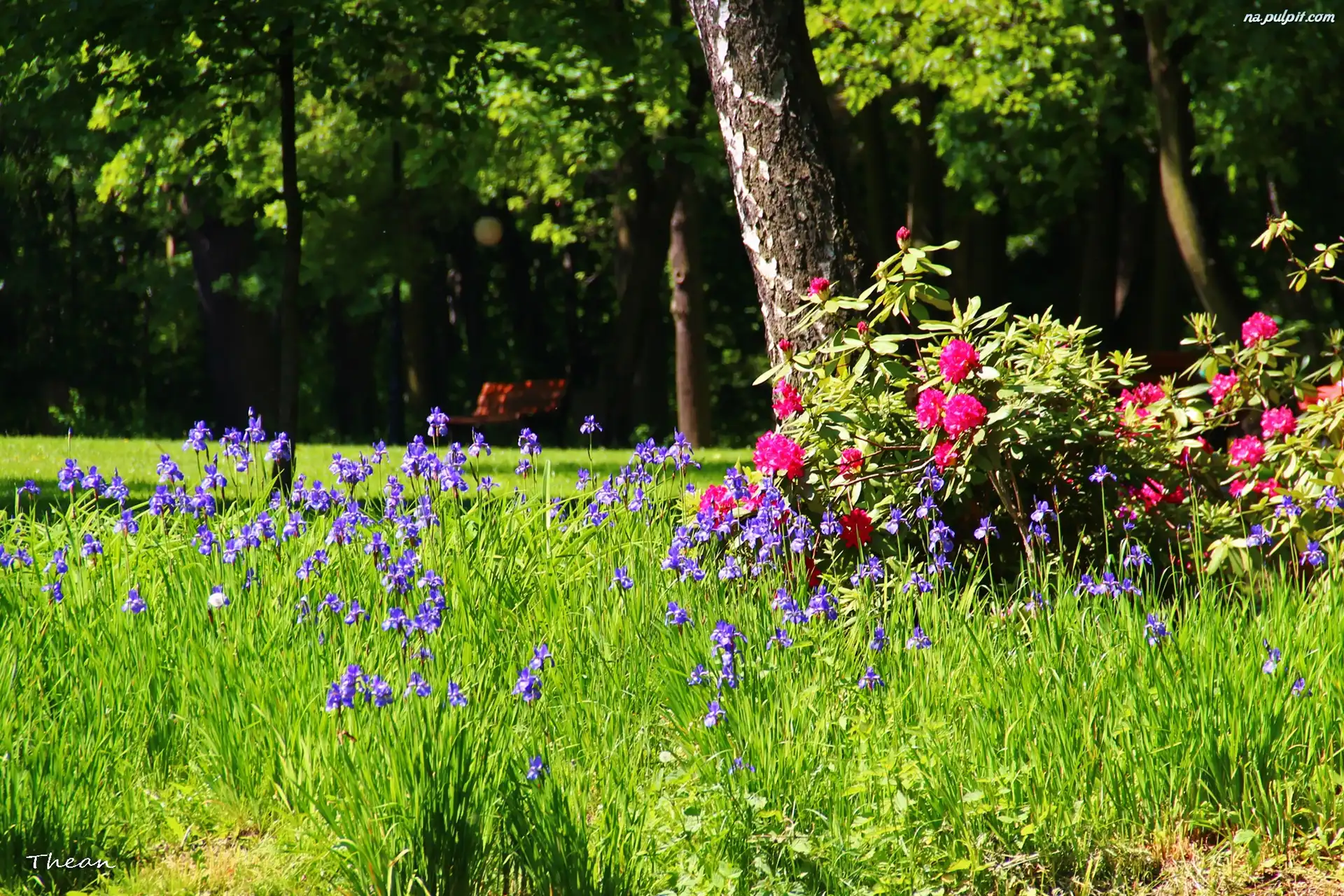 Lato, Kwiaty, Park, Drzewa Na Pulpit