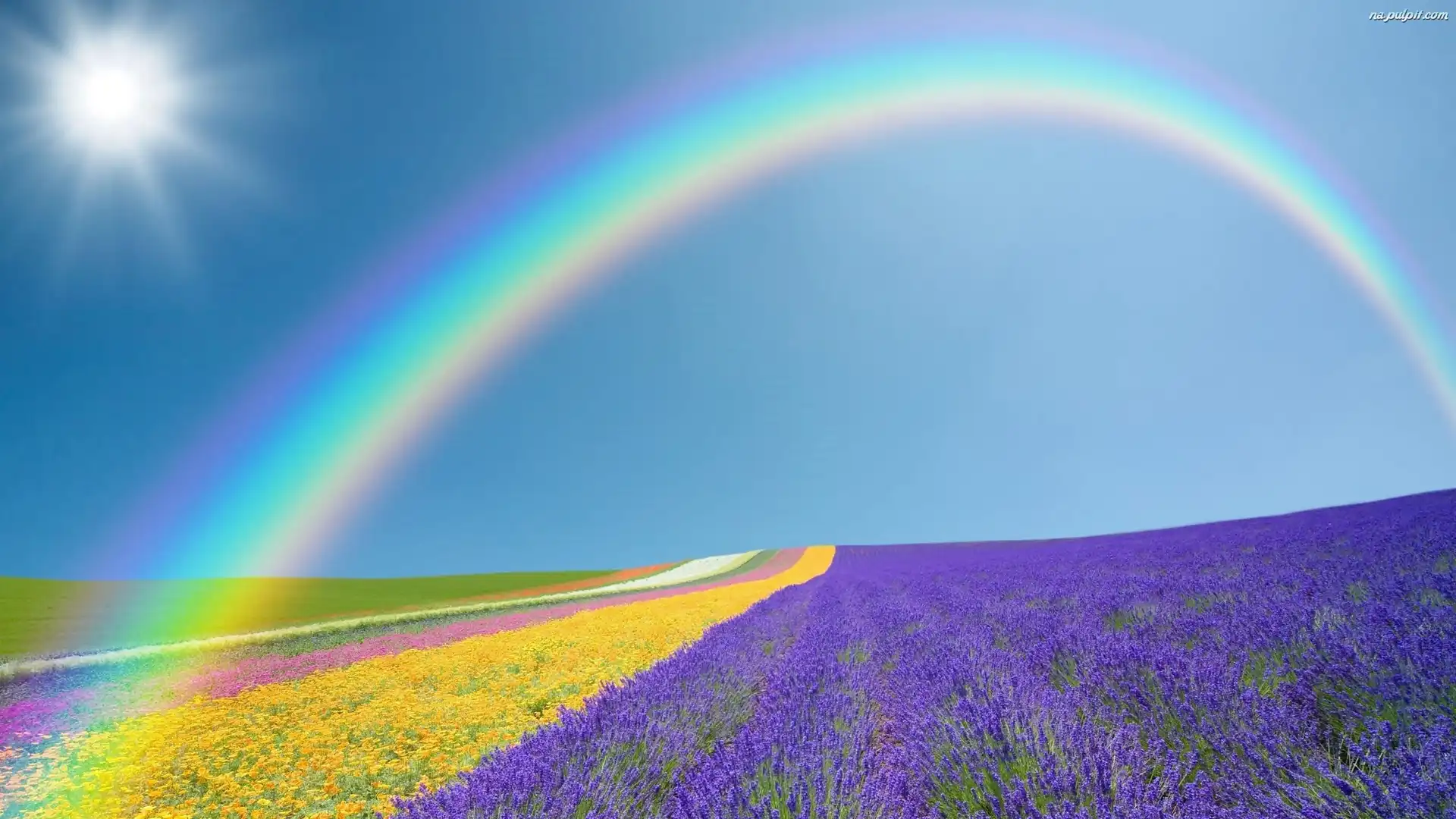Lato, Uprawne, Pola, Tęcza, Słońce Na Pulpit