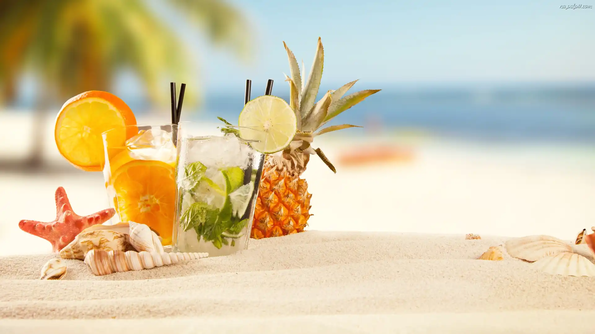 Lato, Kolorowe, Plaża, Tropikalna, Drinki Na Pulpit