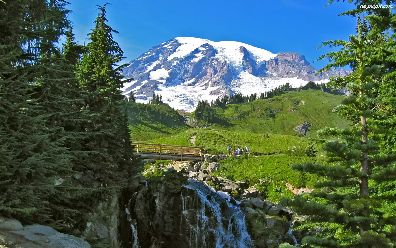 Lato, Góry, Wodospad, Świerki Na Pulpit