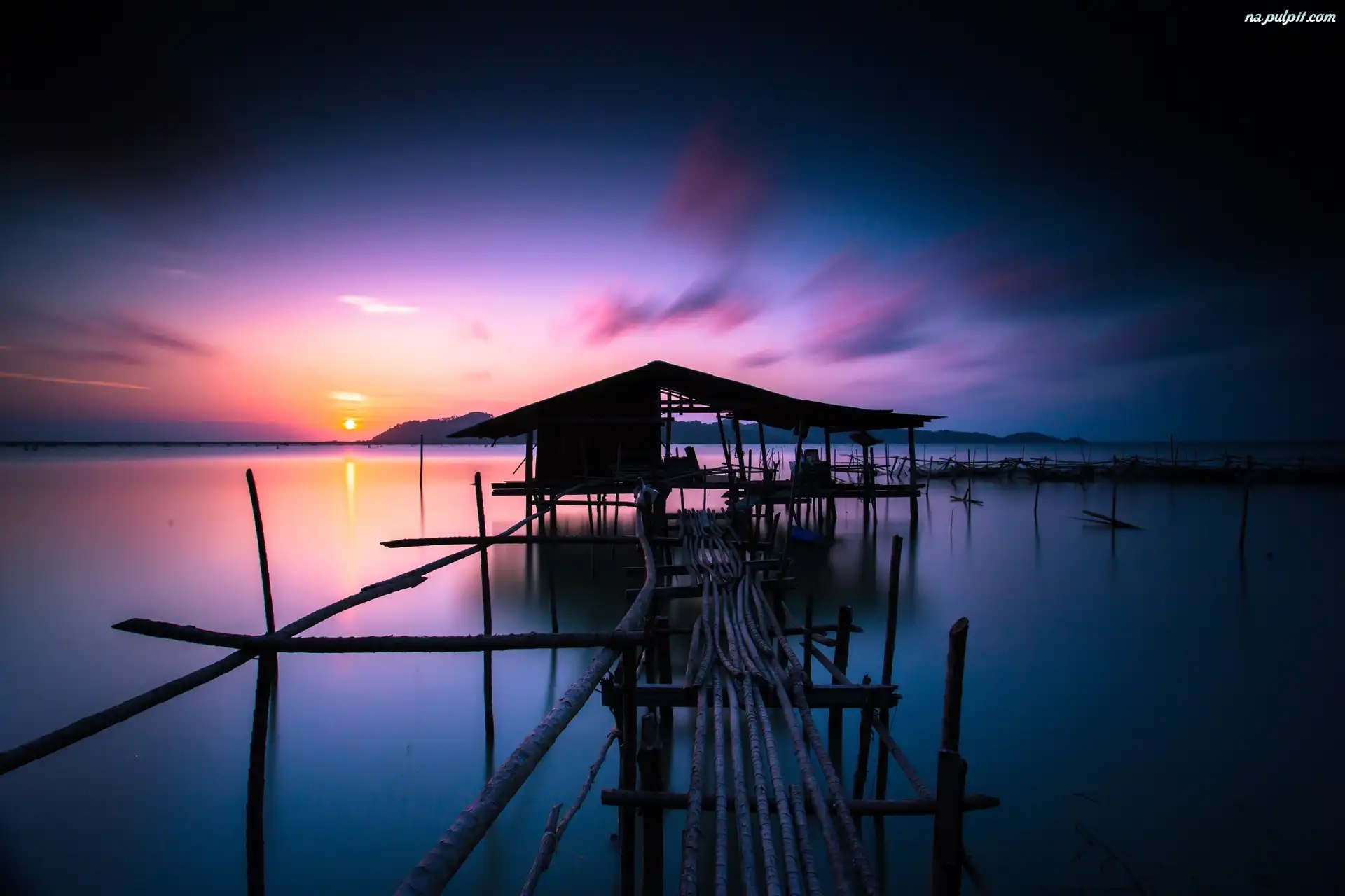 Lato, Morze, Domek, Zachód Słońca Na Pulpit