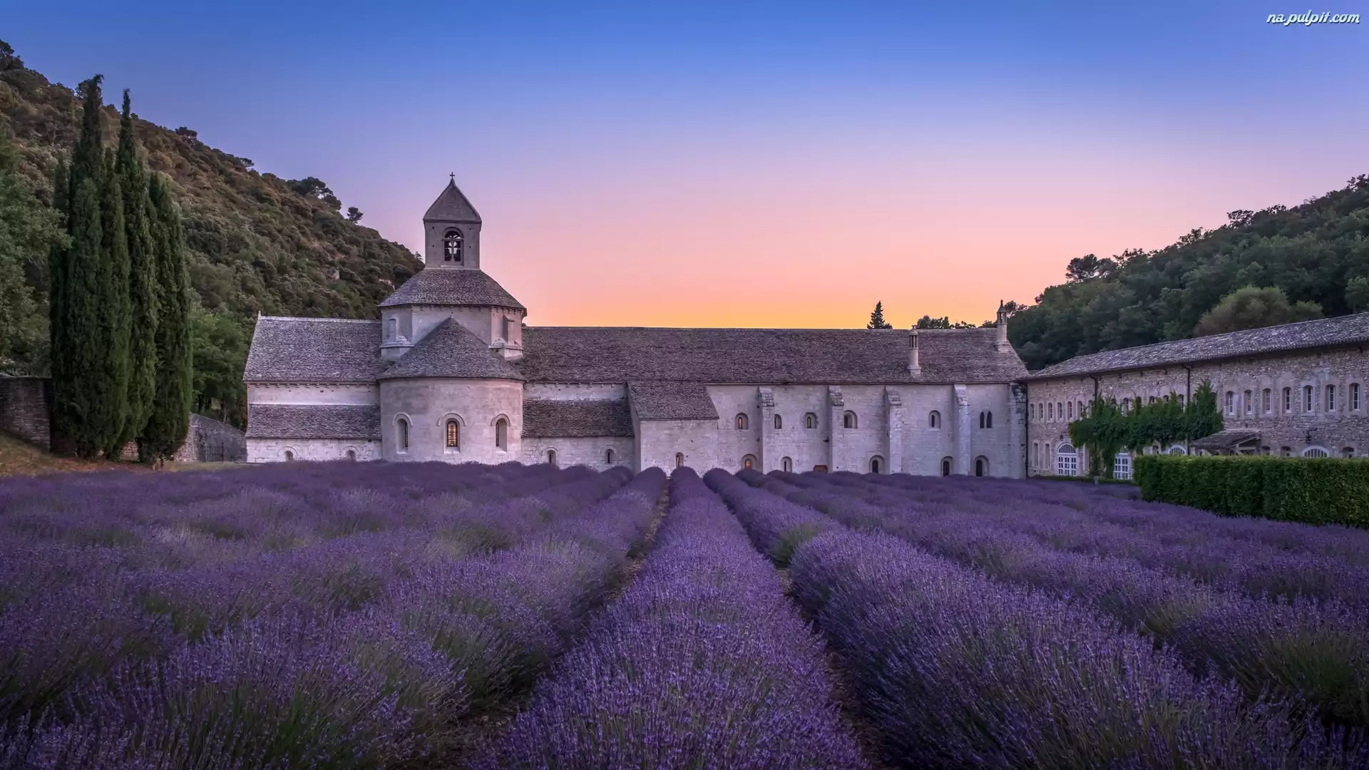 Klasztor, Francja, Pole, Lawenda, Prowansja, Drzewa Na Pulpit