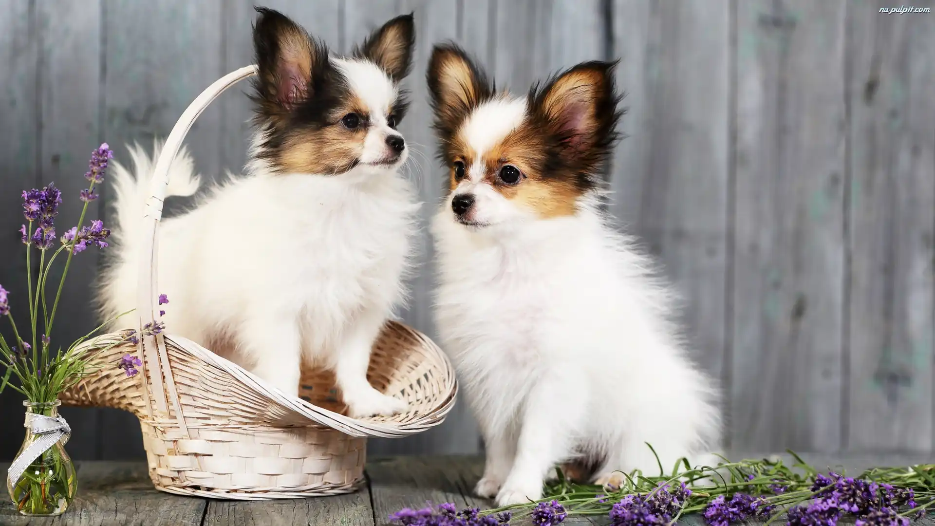 Lawenda, Chihuahua długowłosa, Psy, Dwa, Koszyk Na Pulpit