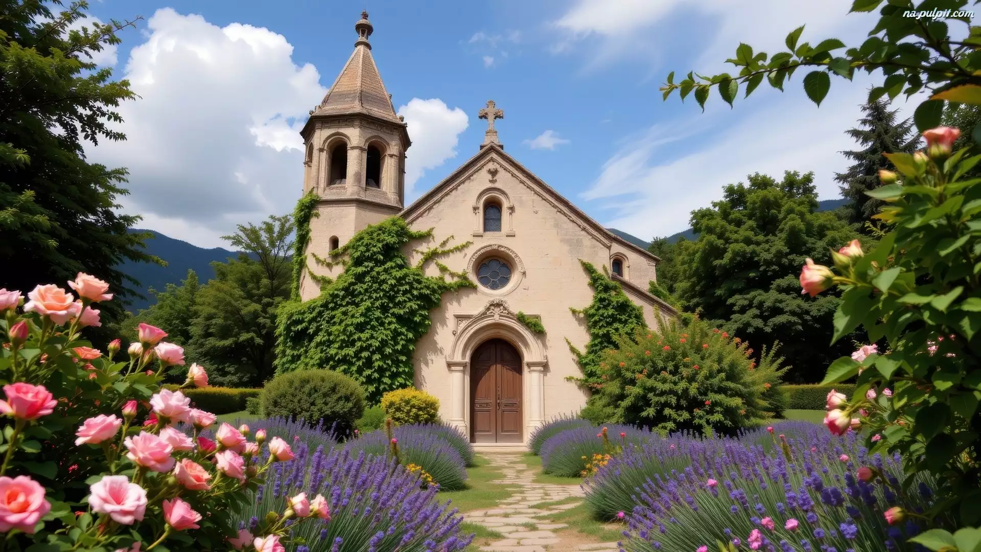 Drzewa, Kościół, Róże, Lawenda, Kwiaty, Krzewy Na Pulpit