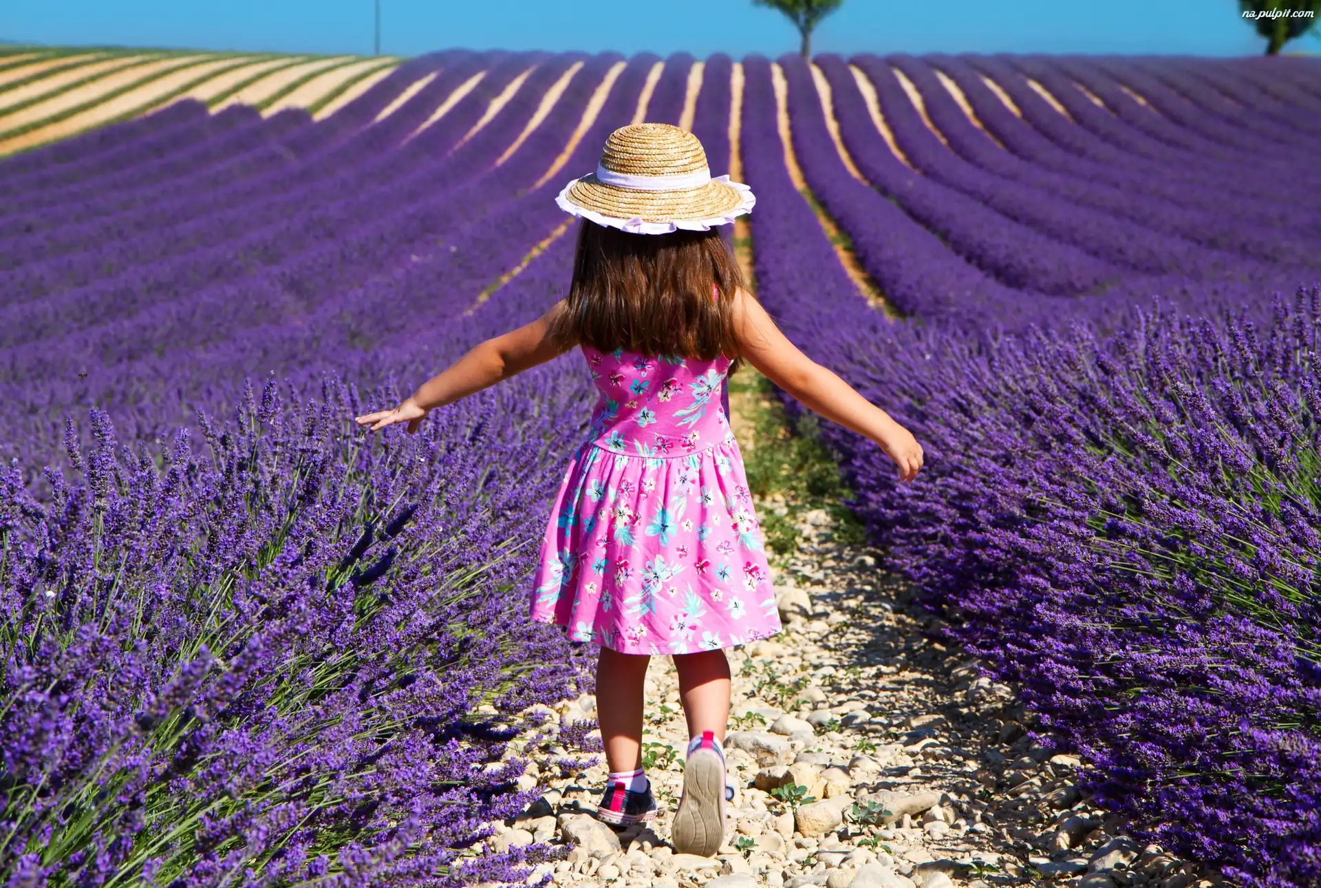Lawendy, Różowa, Sukienka, Dziewczynka, Pole, Kapelusz Na Pulpit