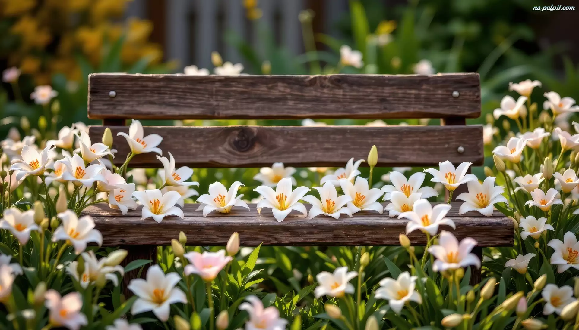 Białe, Kwiaty, Lilie, Ławka Na Pulpit