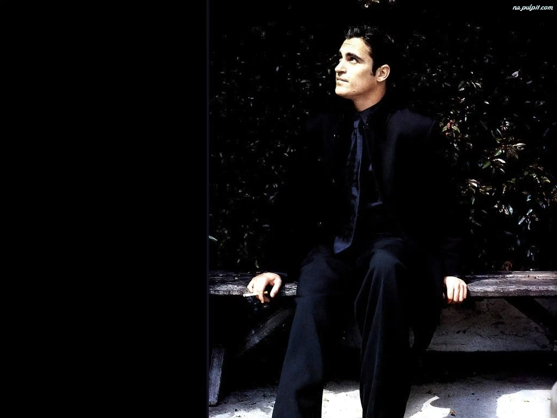 ławka, Joaquin Phoenix, czarny strój Na Pulpit