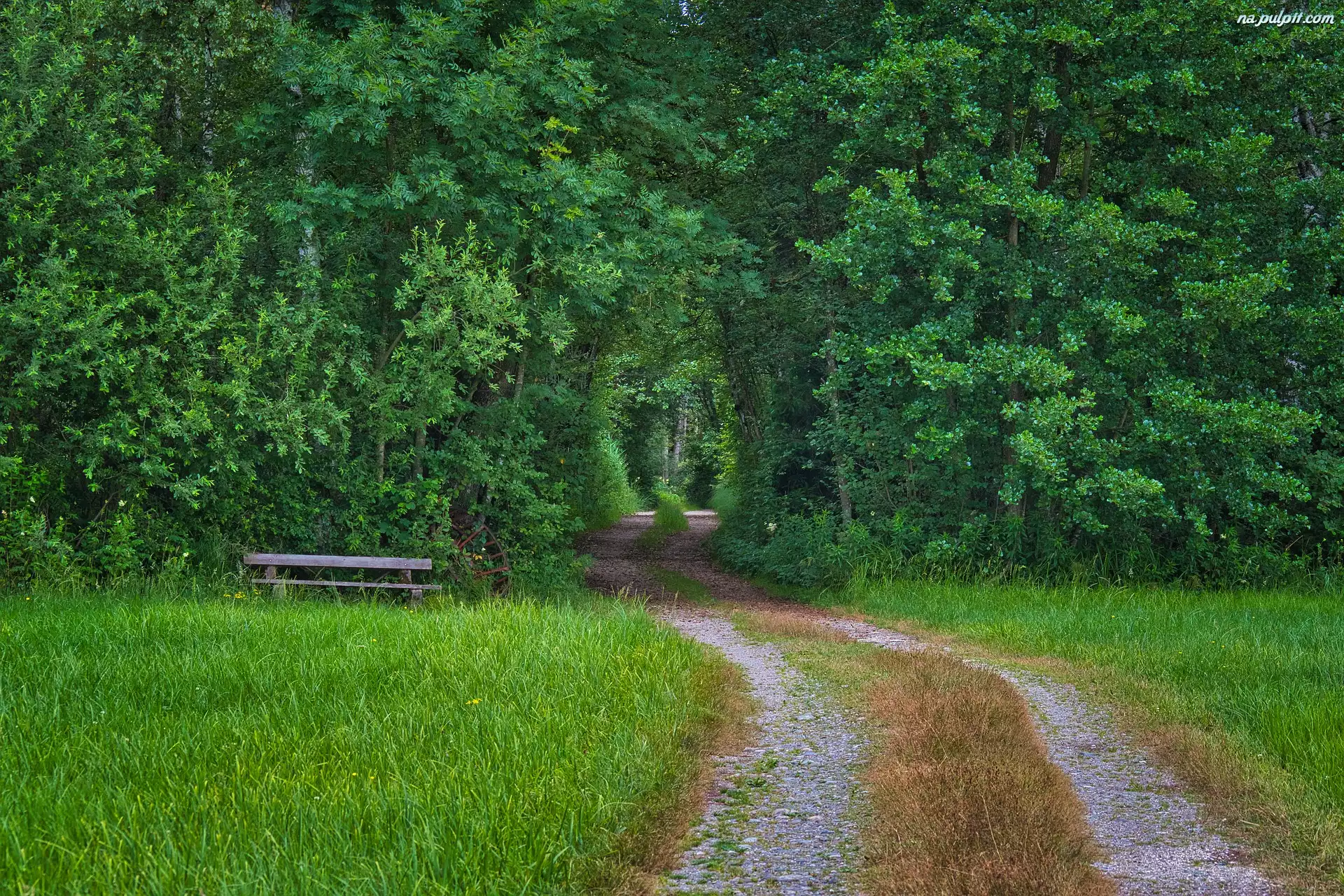 Ścieżka, Ławka, Trawa, Drzewa, Las Na Pulpit