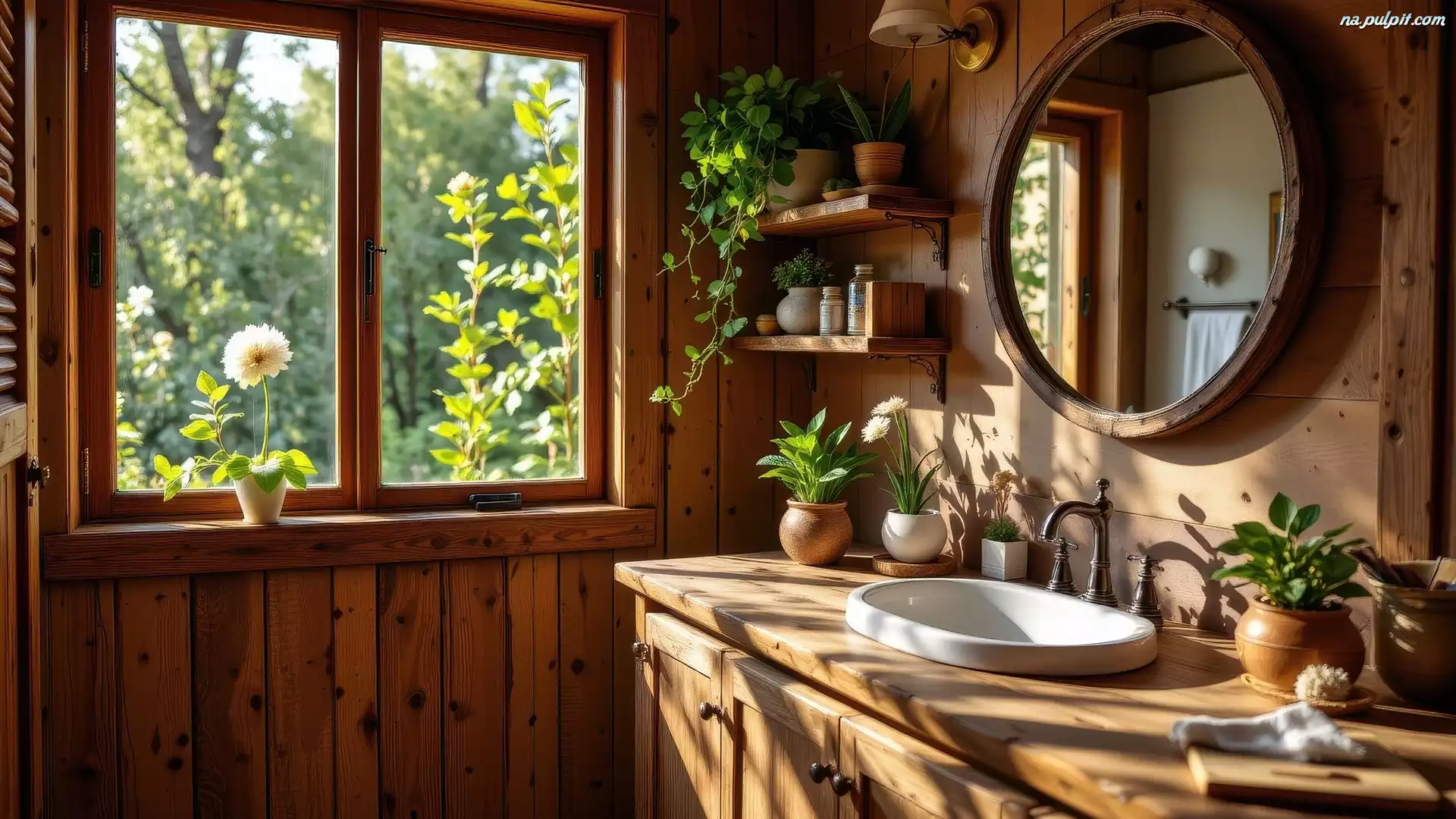 Półki, Okno, Lustro, Łazienka, Umywalka, Szafka, Kwiaty Na Pulpit