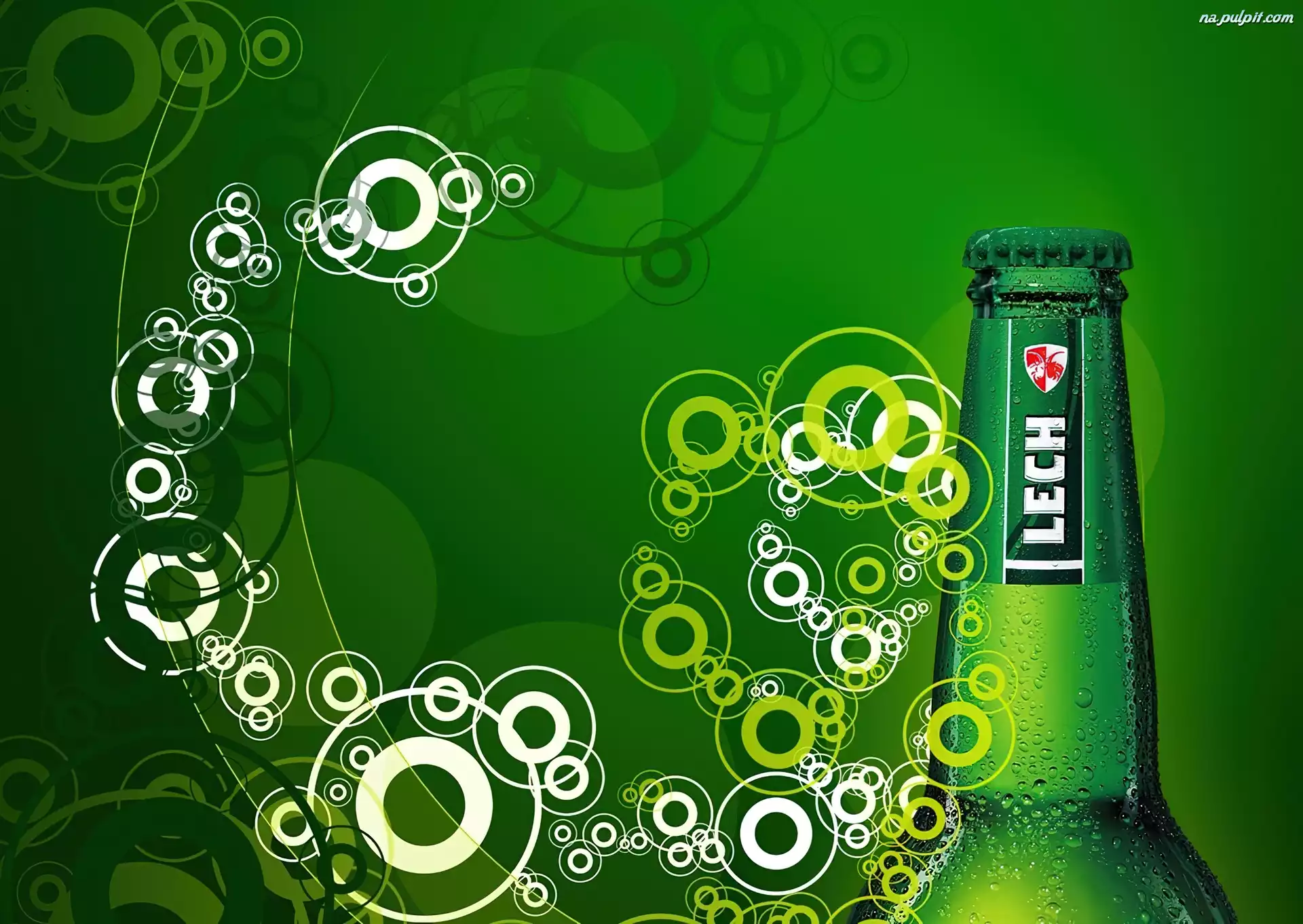 Lech, Zielone, Tło, Białe, Butelka, Kółka Na Pulpit