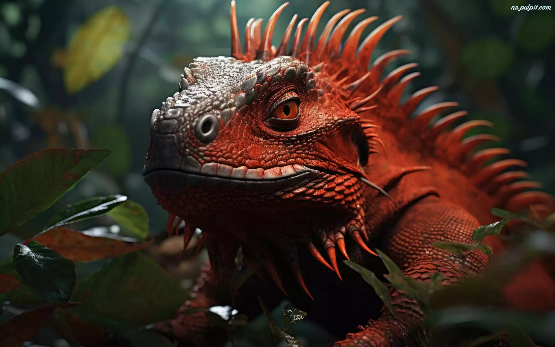 Kolce, Legwan, Czerwony, Grafika, Głowa Na Pulpit