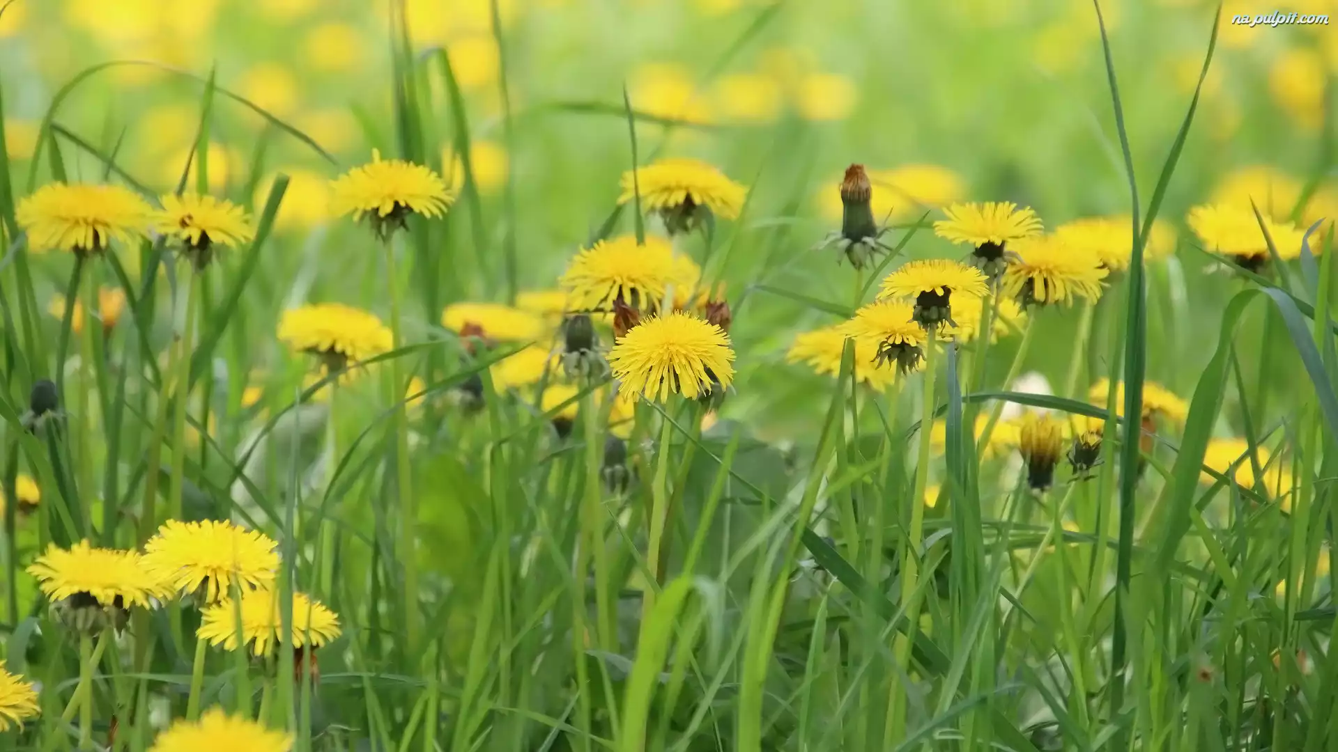 Mniszek lekarski, Kwiaty, Trawa, Łąka Na Pulpit