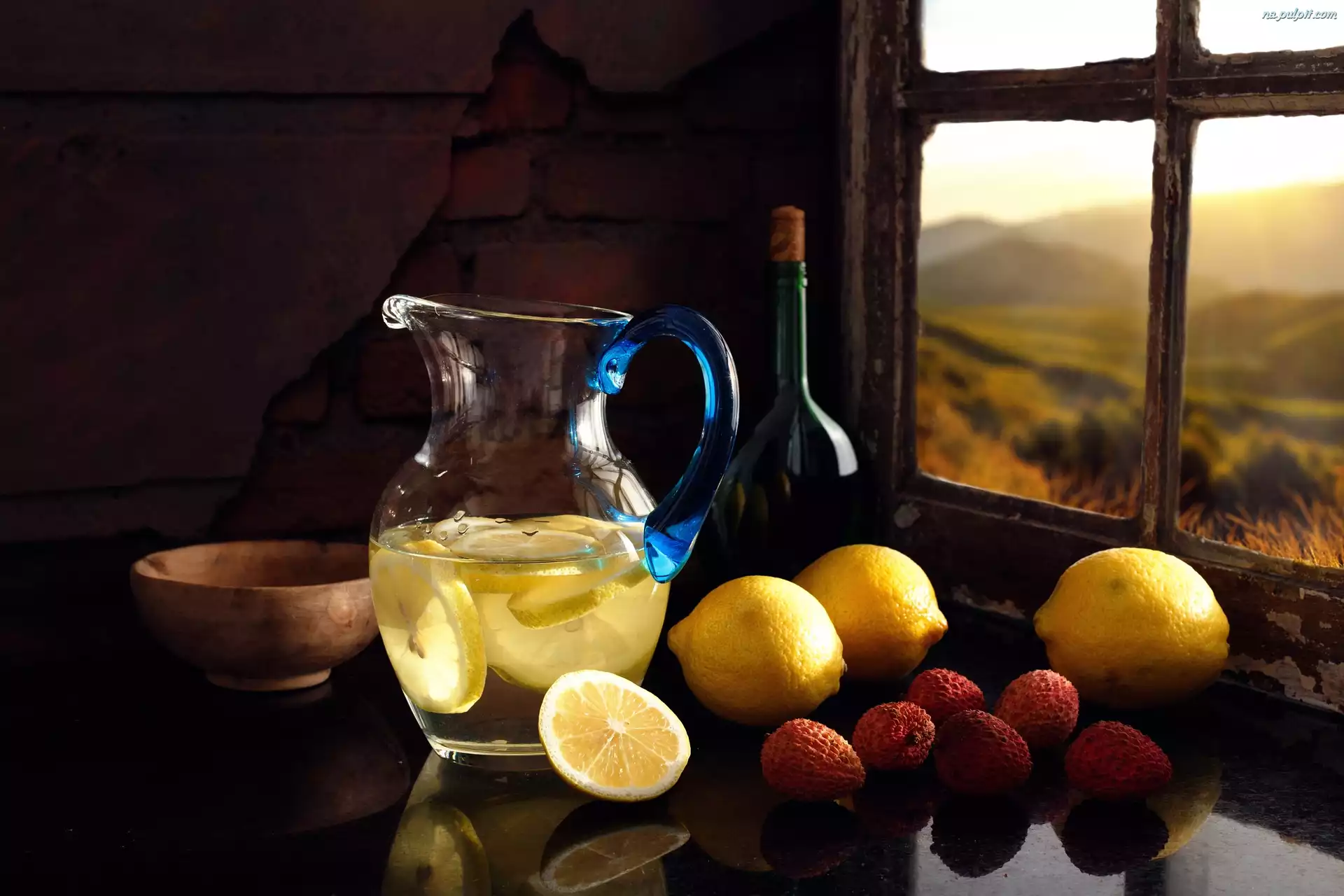 Butelka, Lemoniada, Okno, Cytrynowy, Napój, Kompozycja, Cytryny Na Pulpit