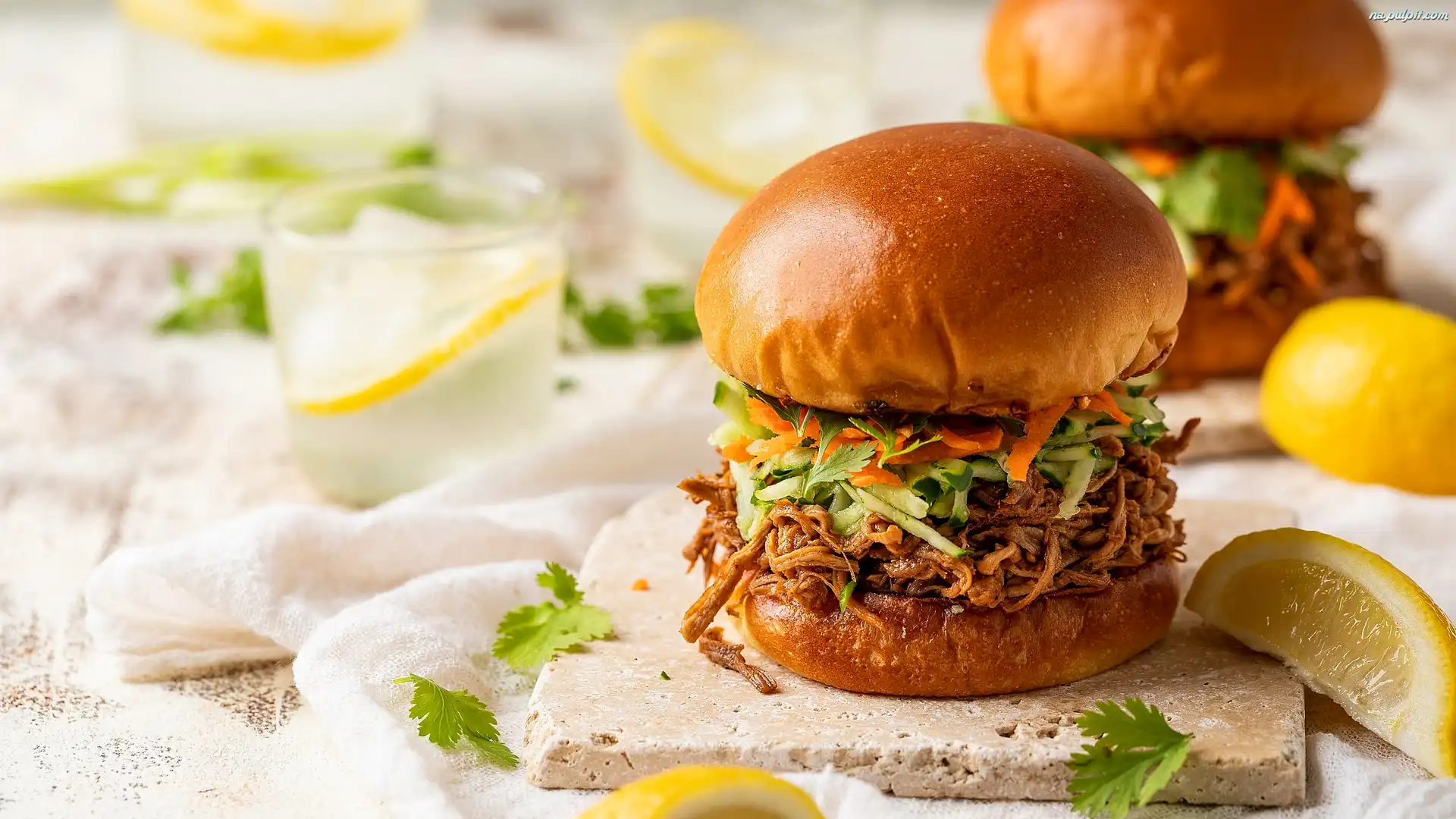 Lemoniada, Cytryny, Deska, Hamburger, Szklanka