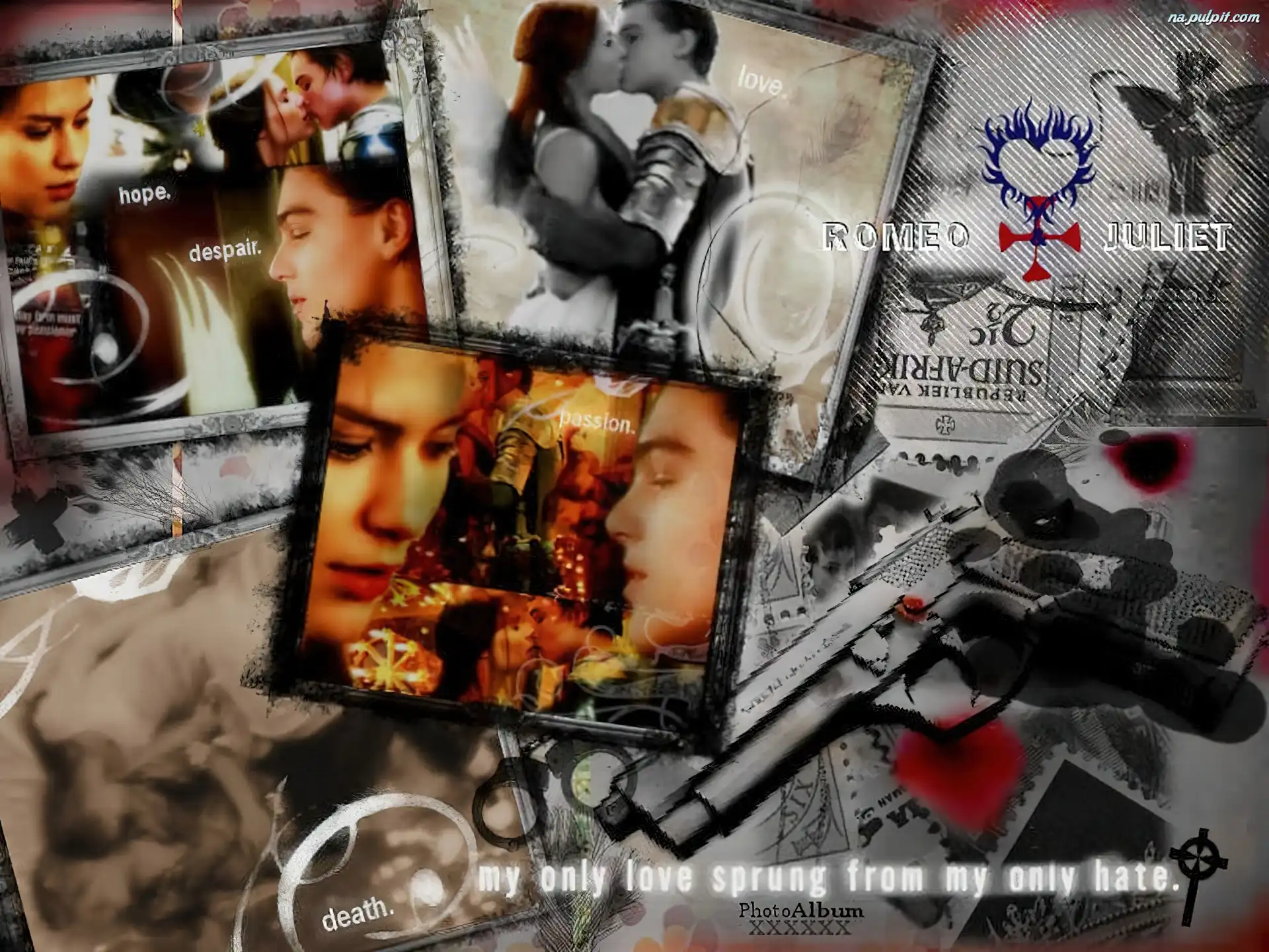pocałunek, Leonardo DiCaprio, rewolwer, Romeo And Juliet, zdjęcia Na Pulpit