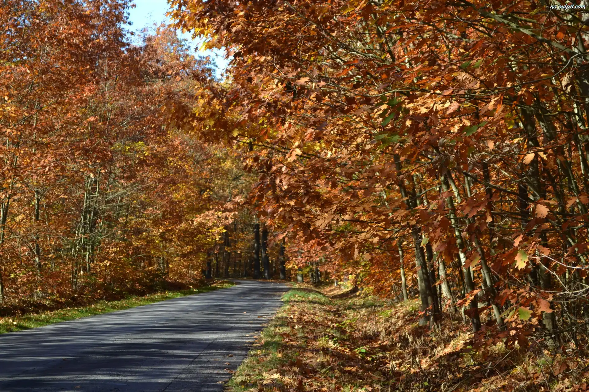 Lesie, Jesiennym, W, Szosa, Dębowym