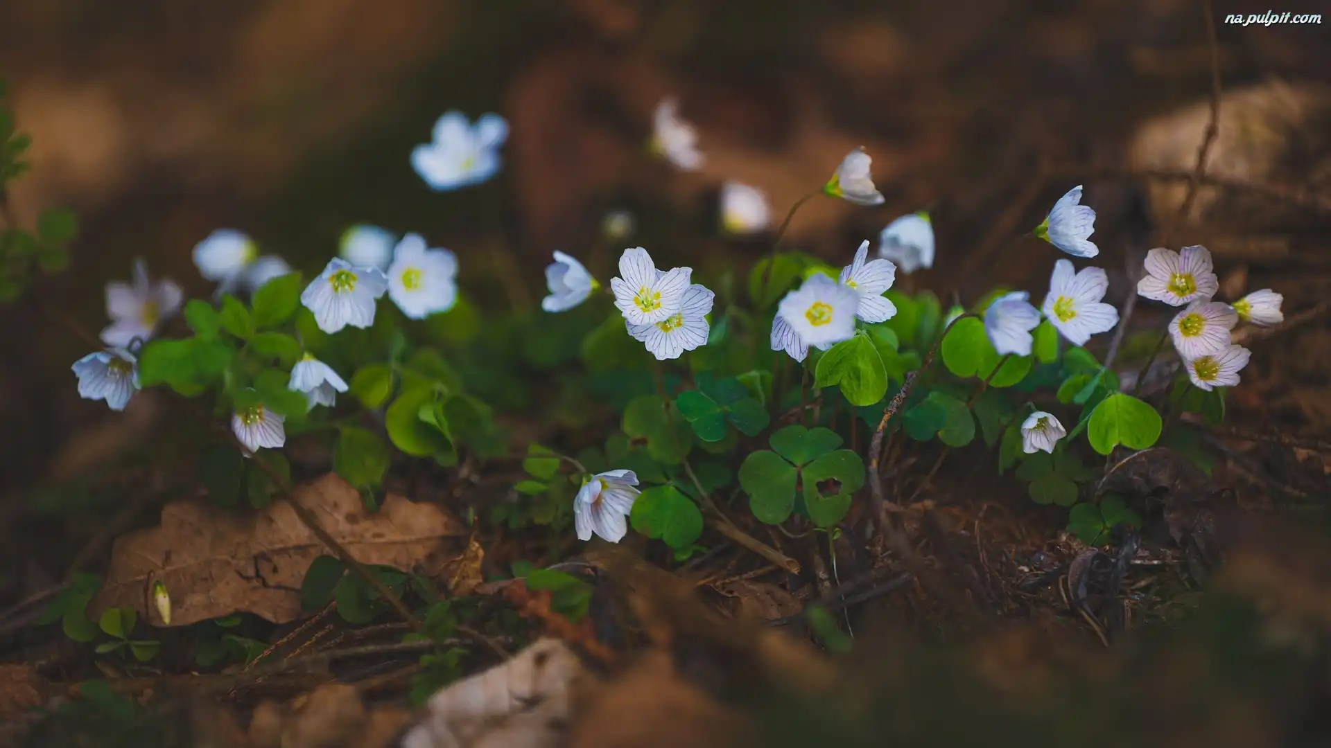 Ściółka, Białe, Kwiaty, Leśna, Szczawik zajęczy Listki Na Pulpit