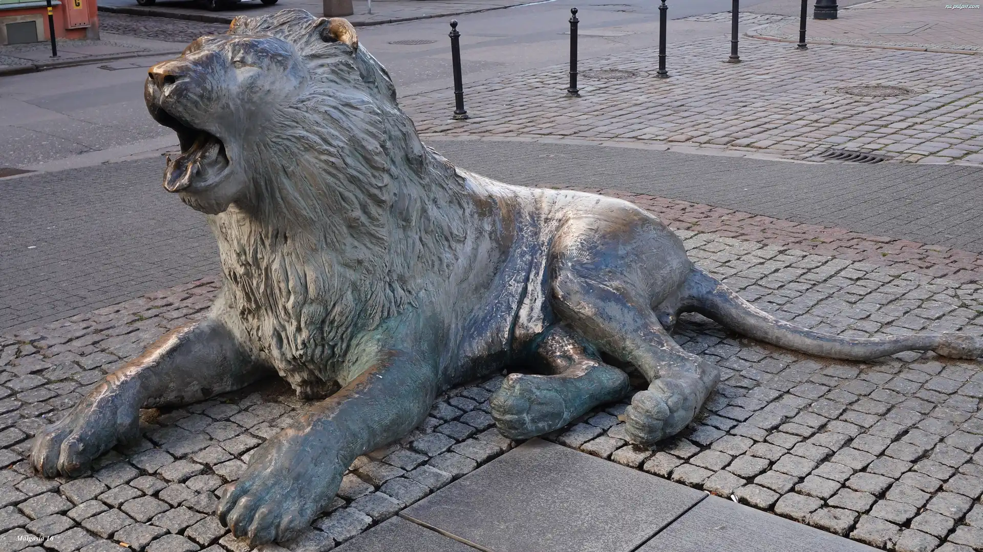 Lew, Ulica, Posąg, Leżący Na Pulpit