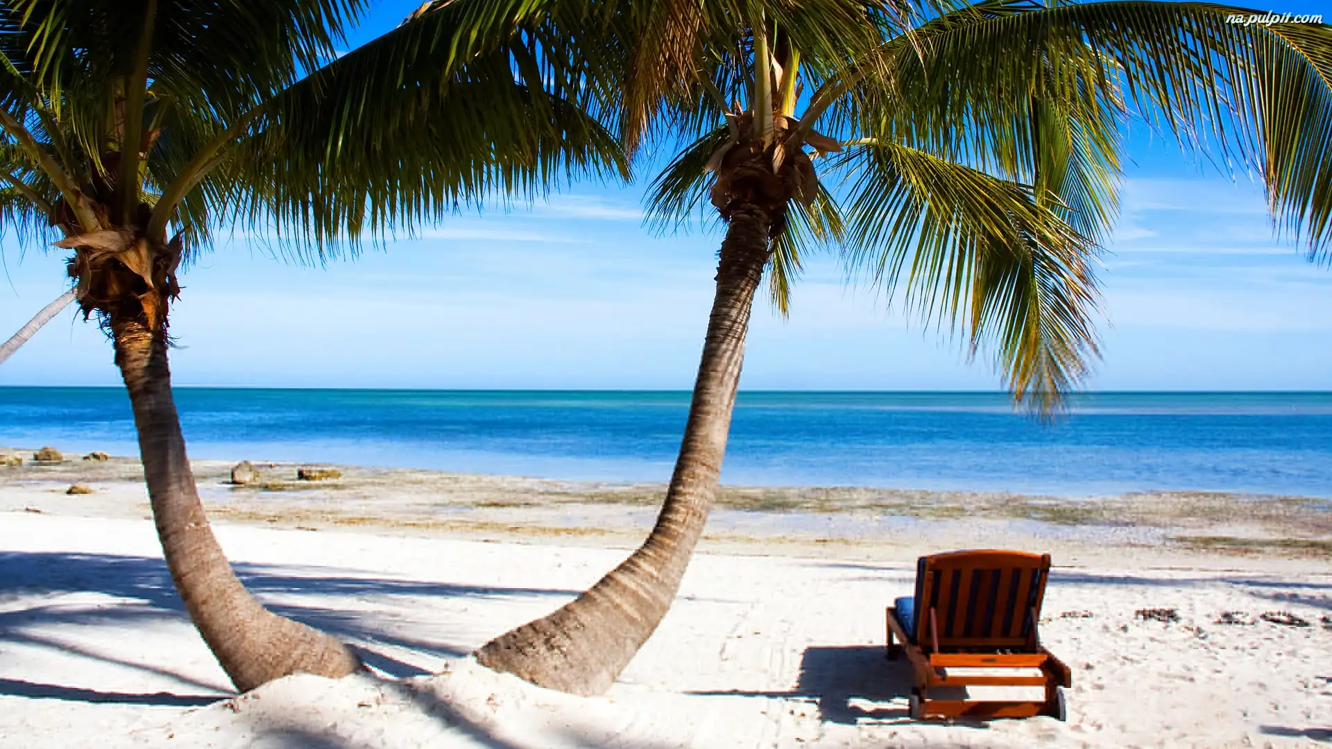 Leżak, Palmy, Woda, Plaża Na Pulpit