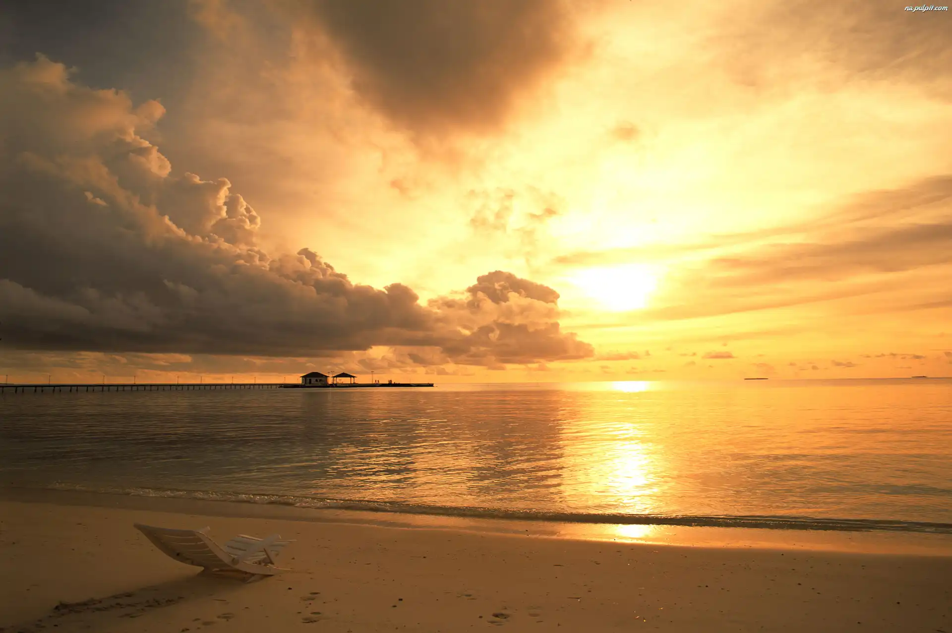 Słońca, Plaża, Wakacje, Molo, Zachód, Leżak Na Pulpit