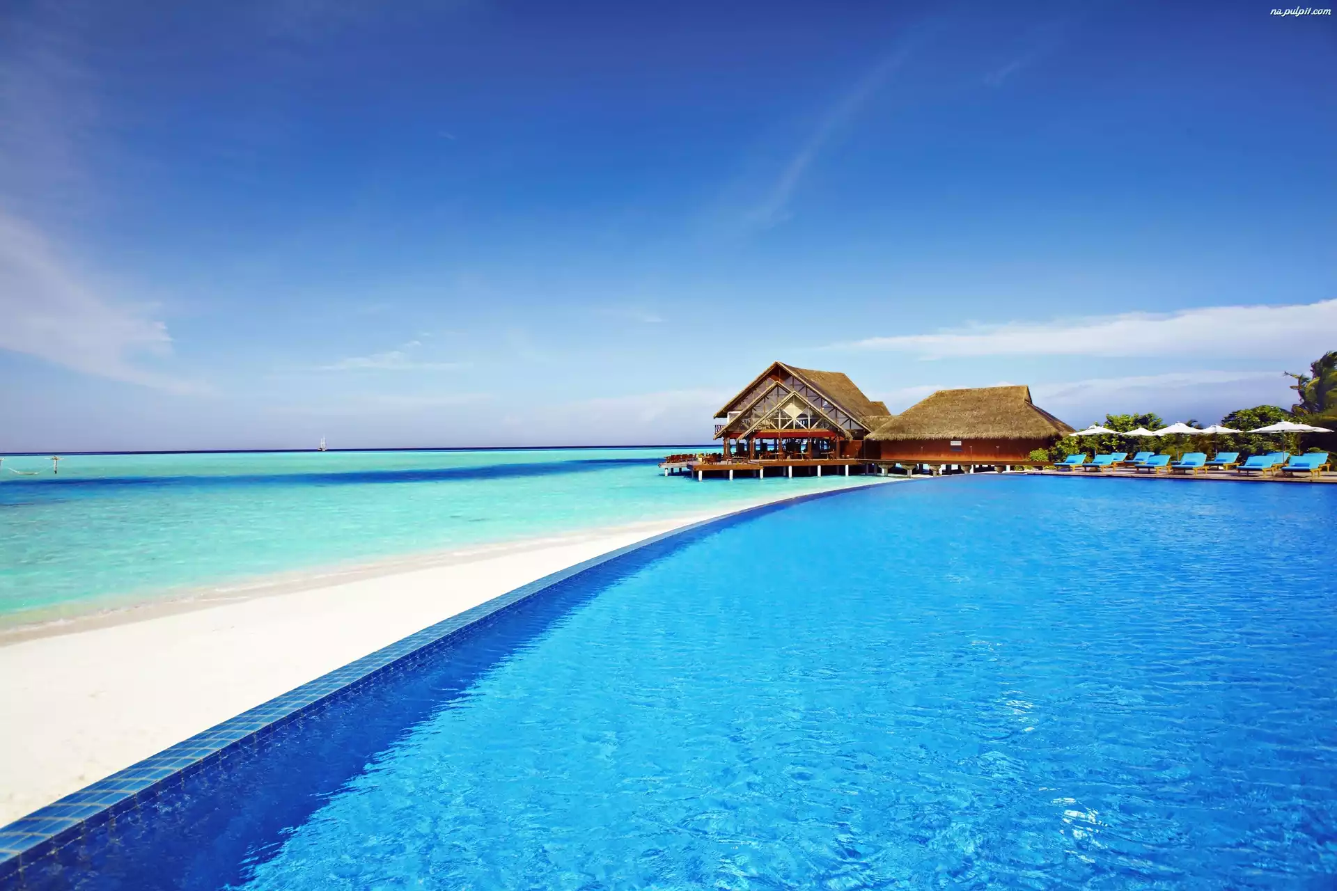 Leżaki, Restauracja, Morze, Parasole Na Pulpit