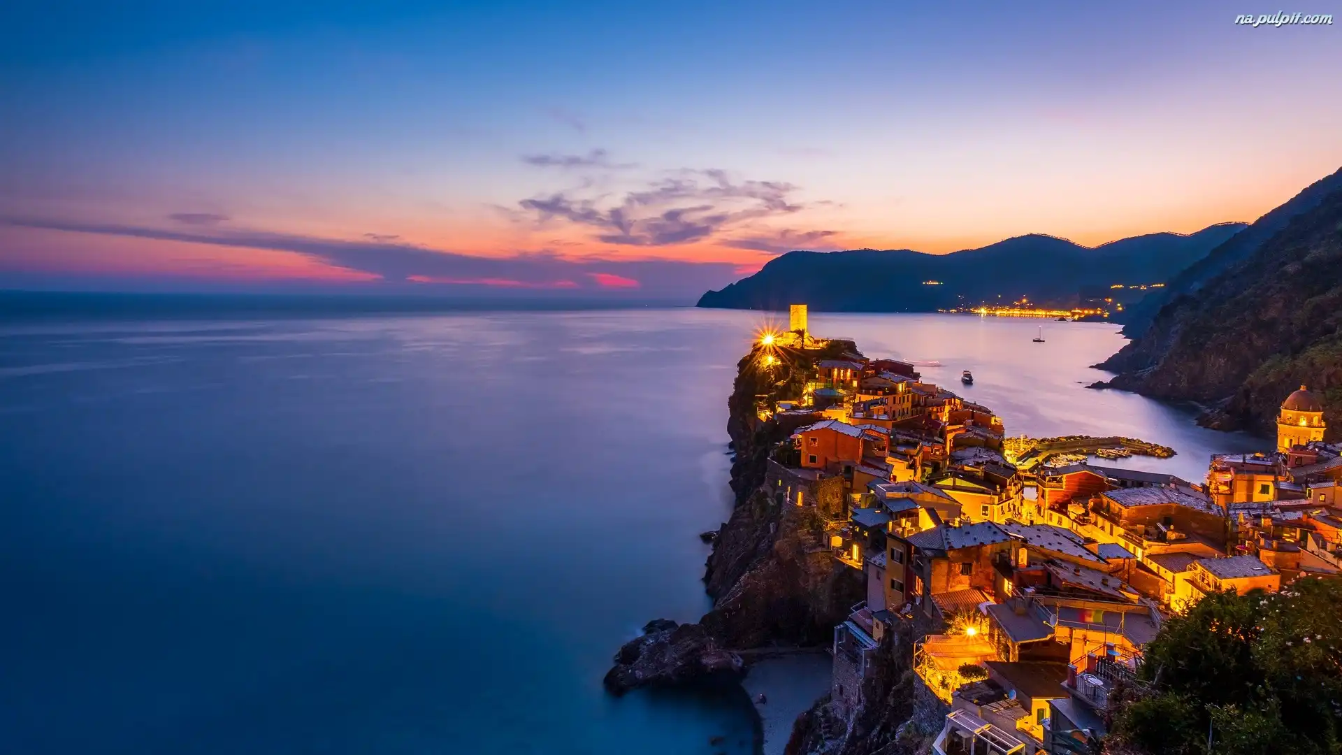 Morze, Liguria, Światła, Wybrzeże, Vernazza, Włochy, Domy Na Pulpit