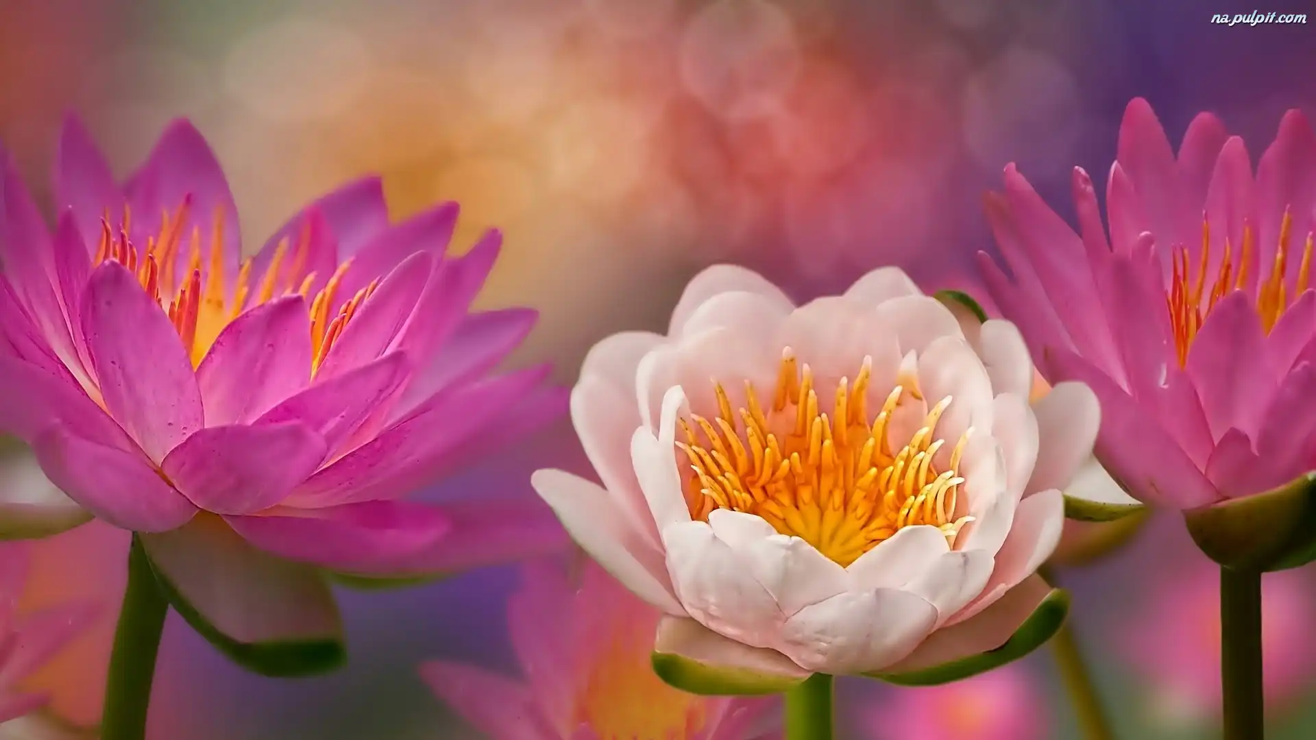 Lilia wodna, Biały, Kwiaty, Różowy Na Pulpit