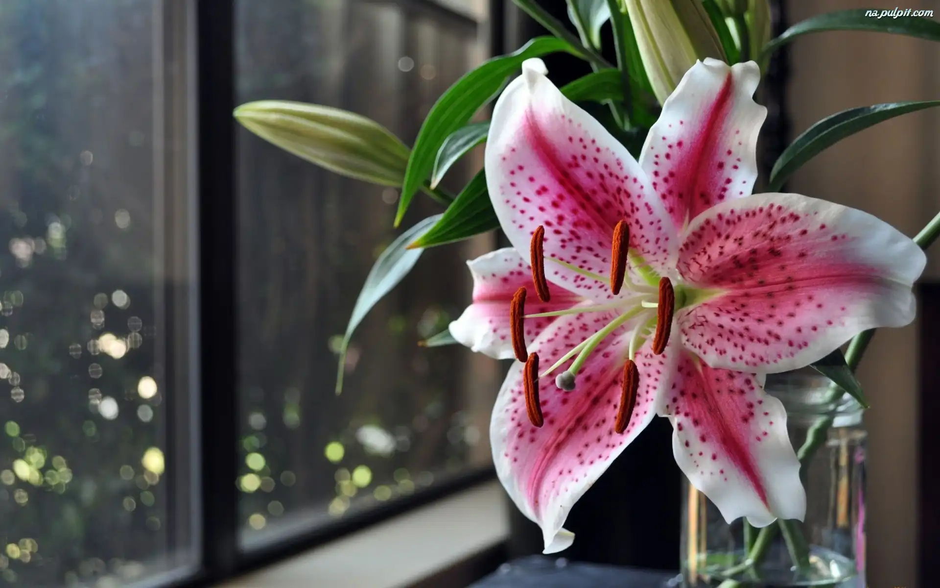 Lilia, Noc, Okno, Różowa Na Pulpit