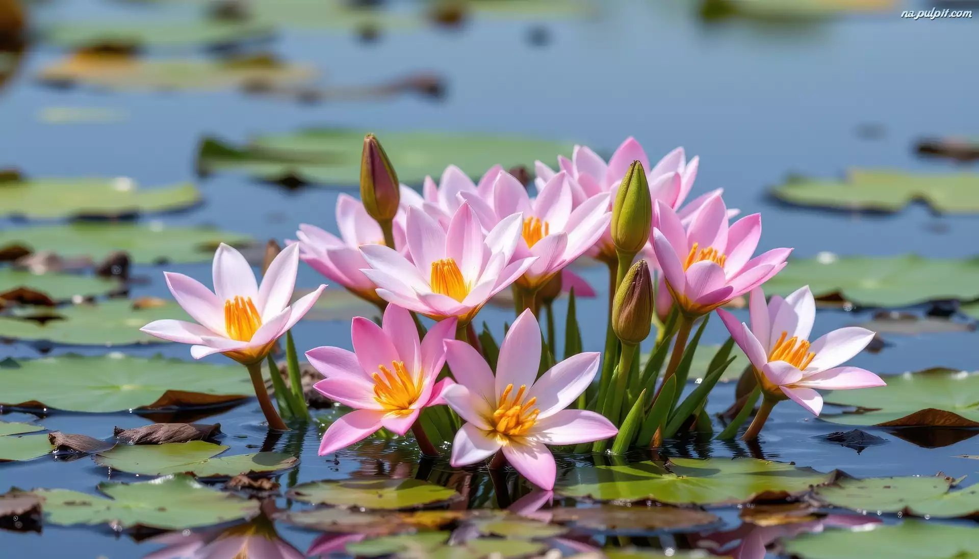 Różowe, Lilie wodne, Woda, Liście Na Pulpit