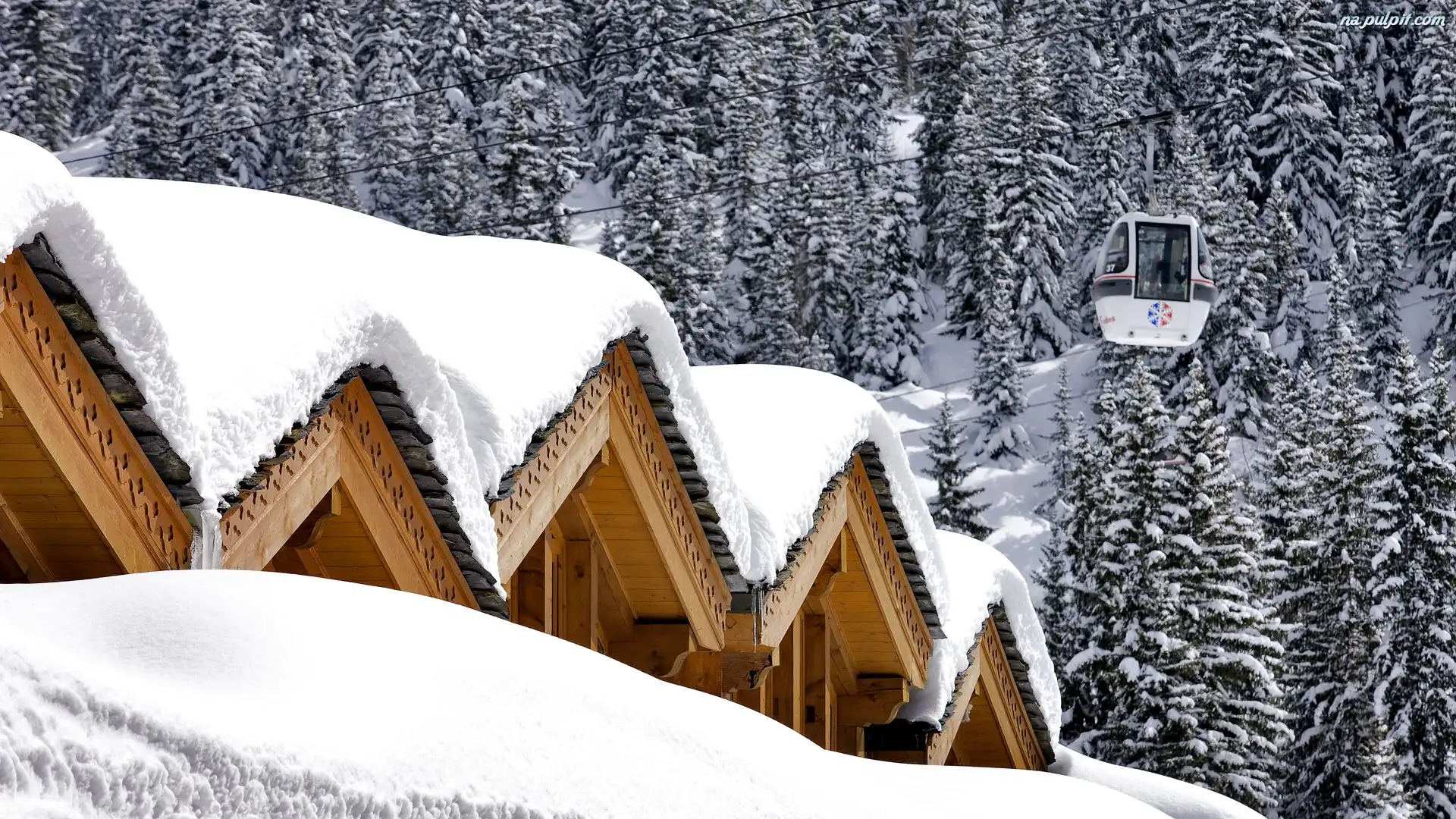 Linowa, Dachy, Zaśnieżone, Zima, Kolejka Na Pulpit