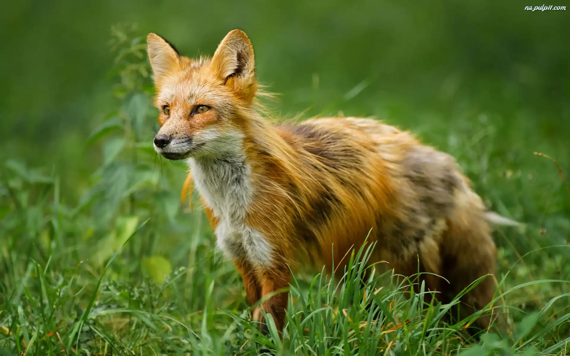 Zielona, B艂臋kitne, Niebo, Trawa, 艁膮ka, Drzewo Brytania, Anglia, Grasmere, Wioska, Wielka Trawa, Lis, Wysoka 艁膮ka, Ko艅, Kasztan Rudy, Lisek