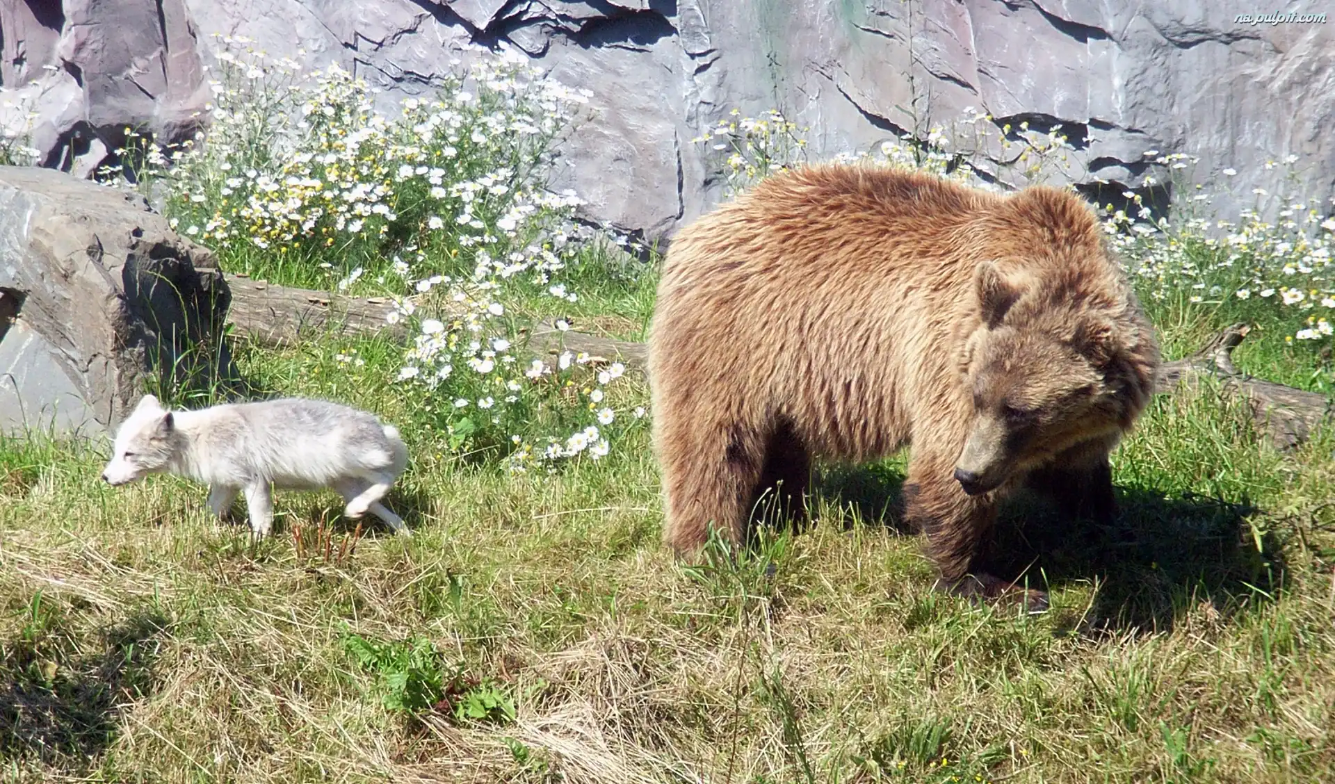 Łąka, Niedźwiedź, Lis, Brunatny Na Pulpit