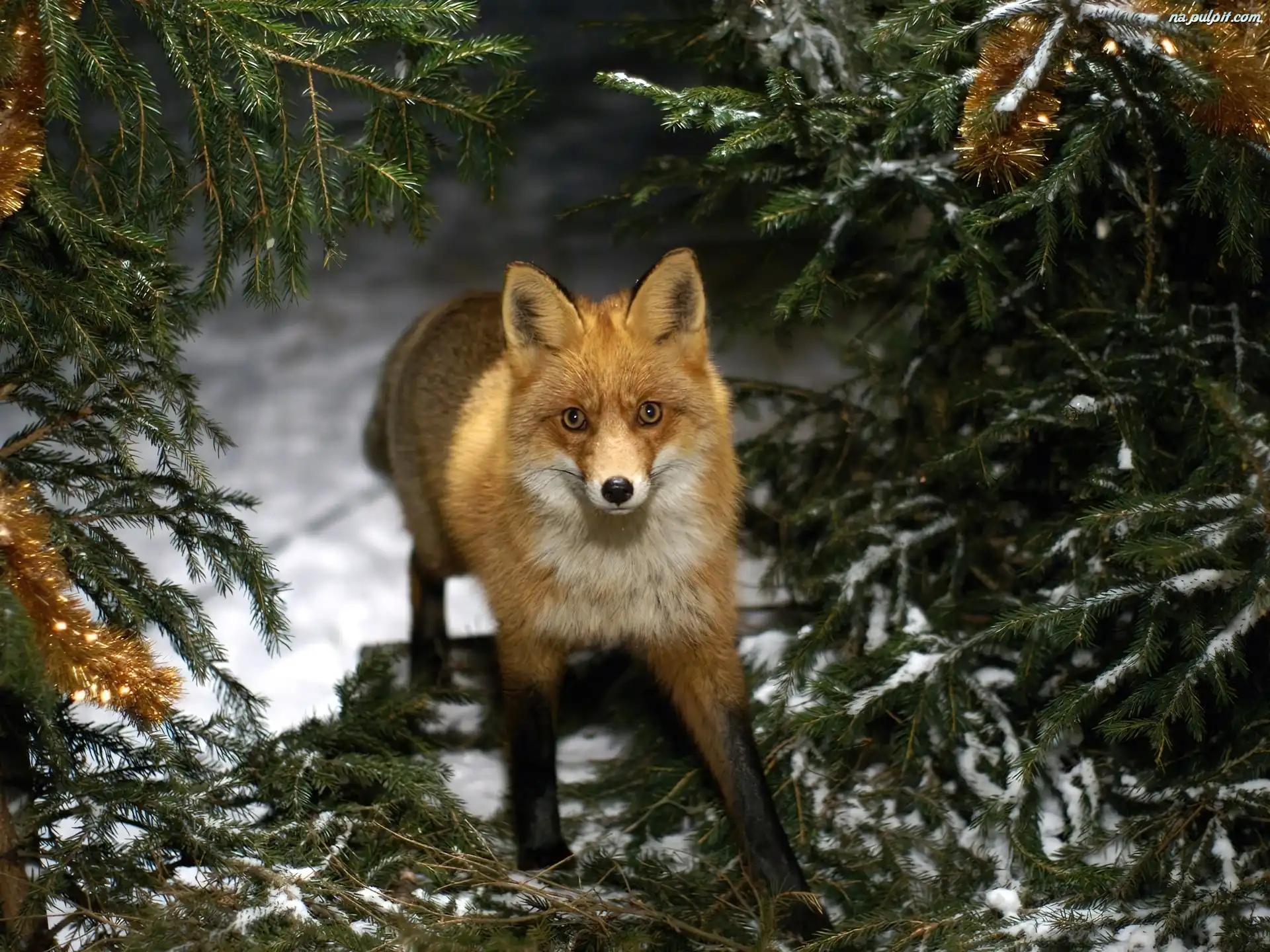 Futro, Polarny, Lis, Puszyste Gałęzie, Siedzący, Lis