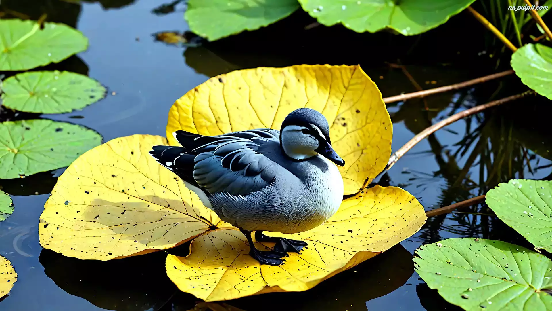 Kaczka, Staw, Żółty, Liść Na Pulpit