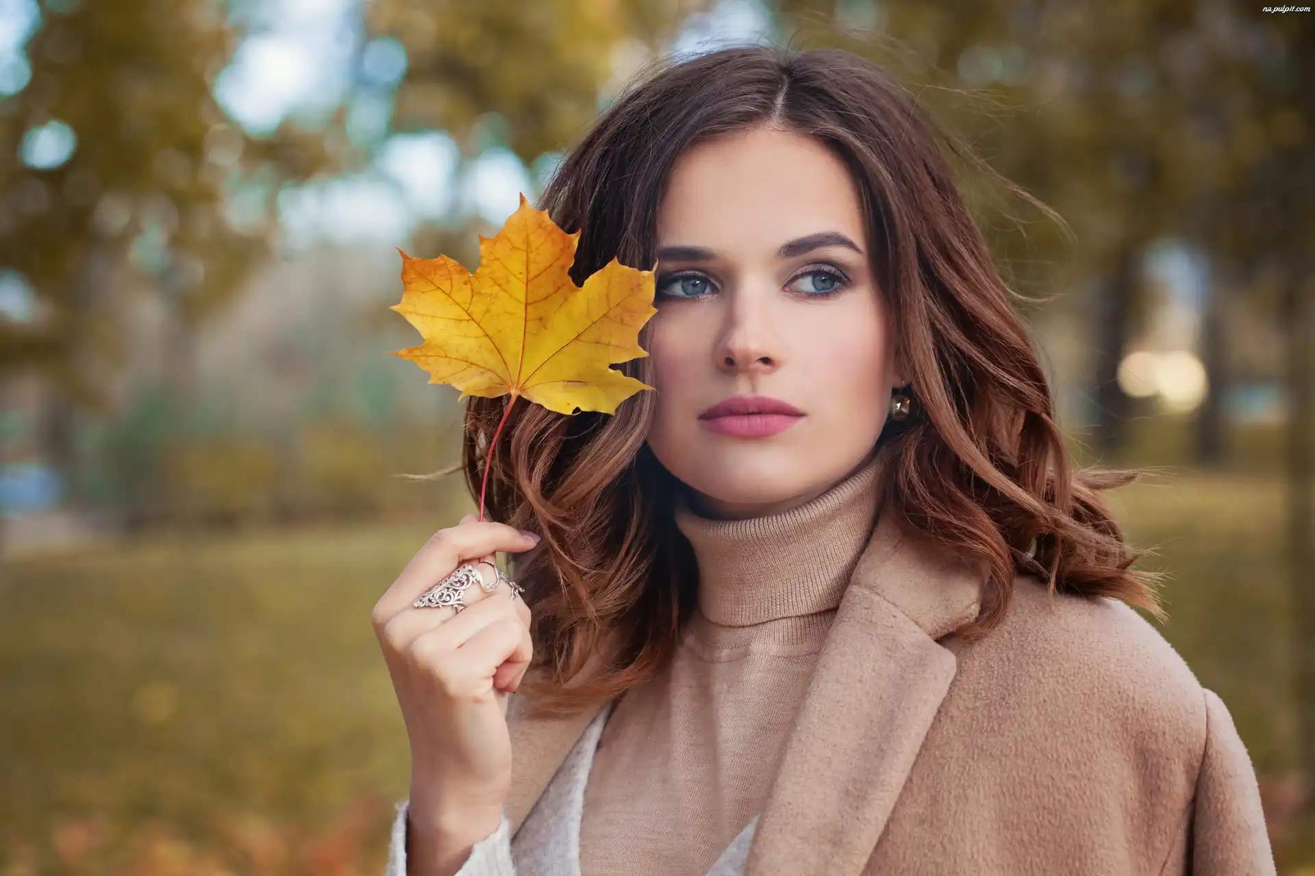 Liść, Szatynka, Kobieta, Modelka Na Pulpit