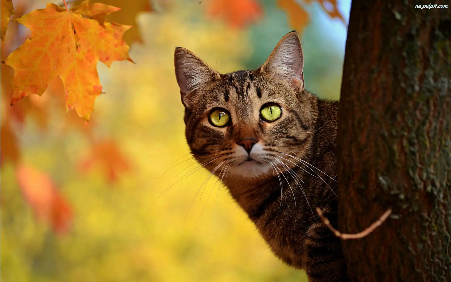 Liść, Drzewo, Kot, Jesienny Na Pulpit