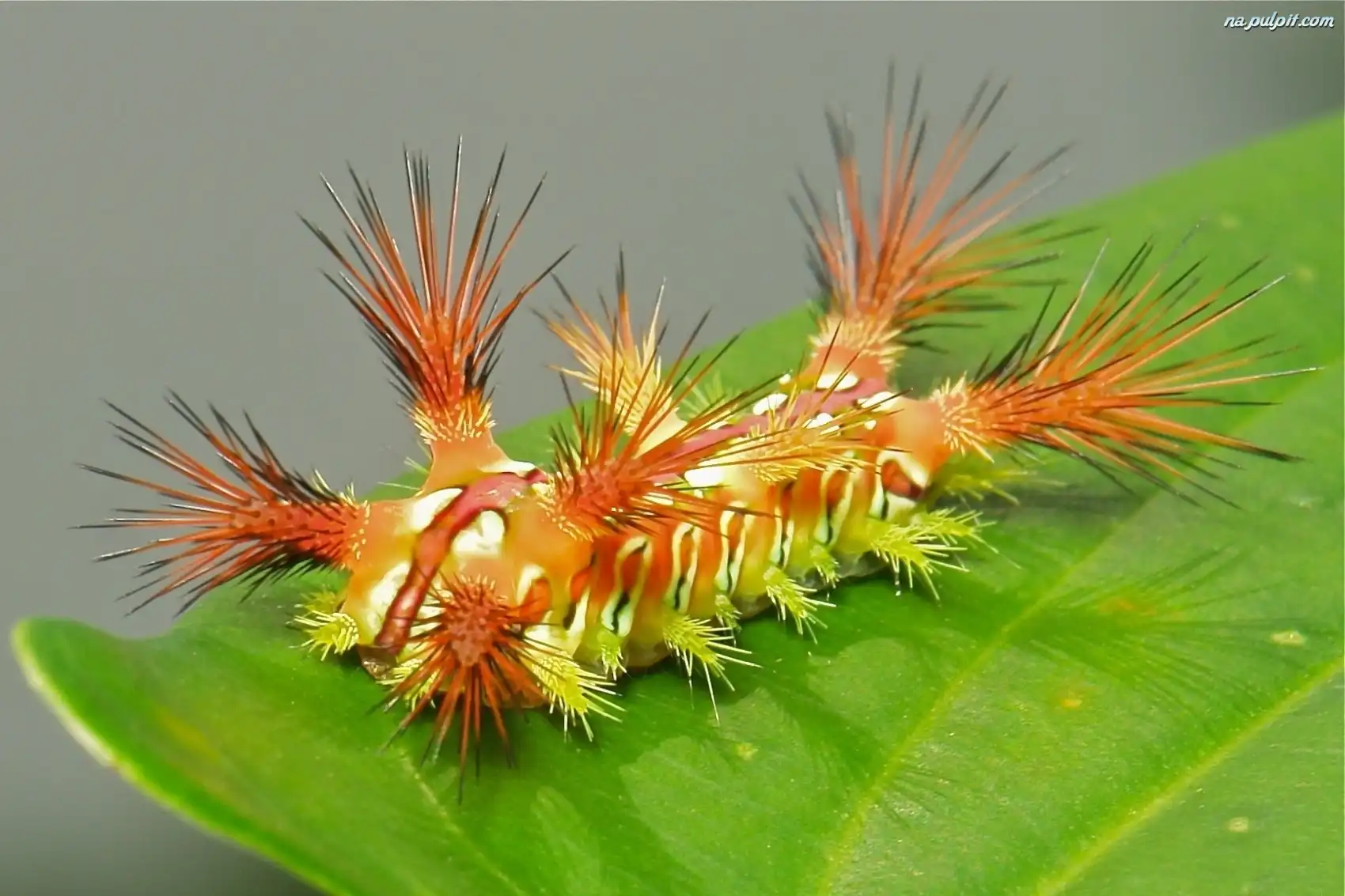 Liść, Gąsienica, Pomarańczowa, Zielony Na Pulpit