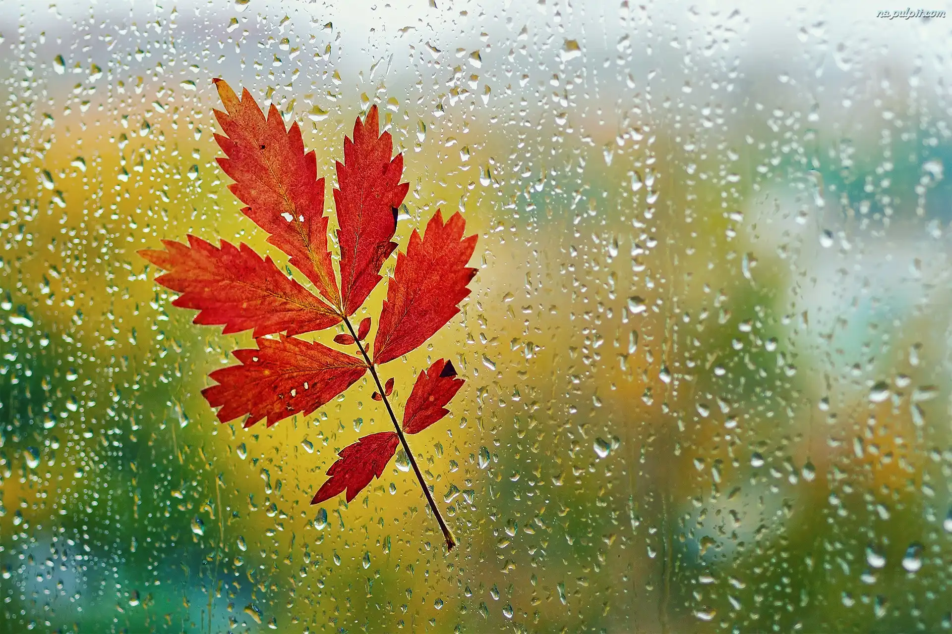 Liść, Deszcz, Szyba, Jesienny Na Pulpit