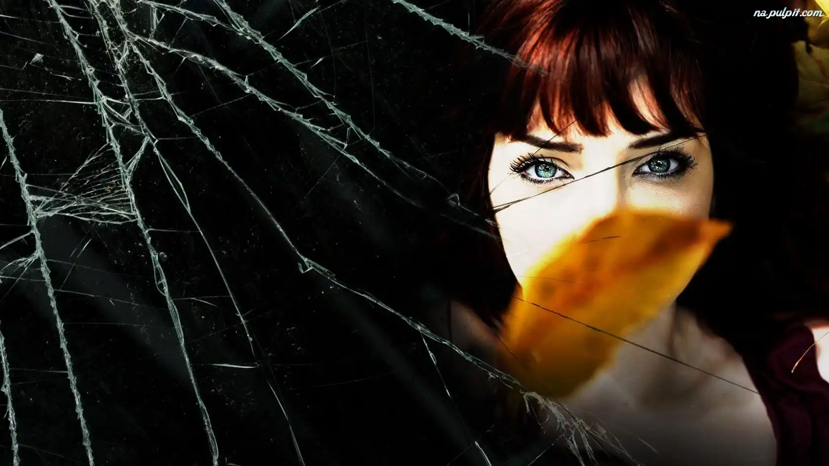 Liść, Pęknięta, Twarz, Szyba Na Pulpit