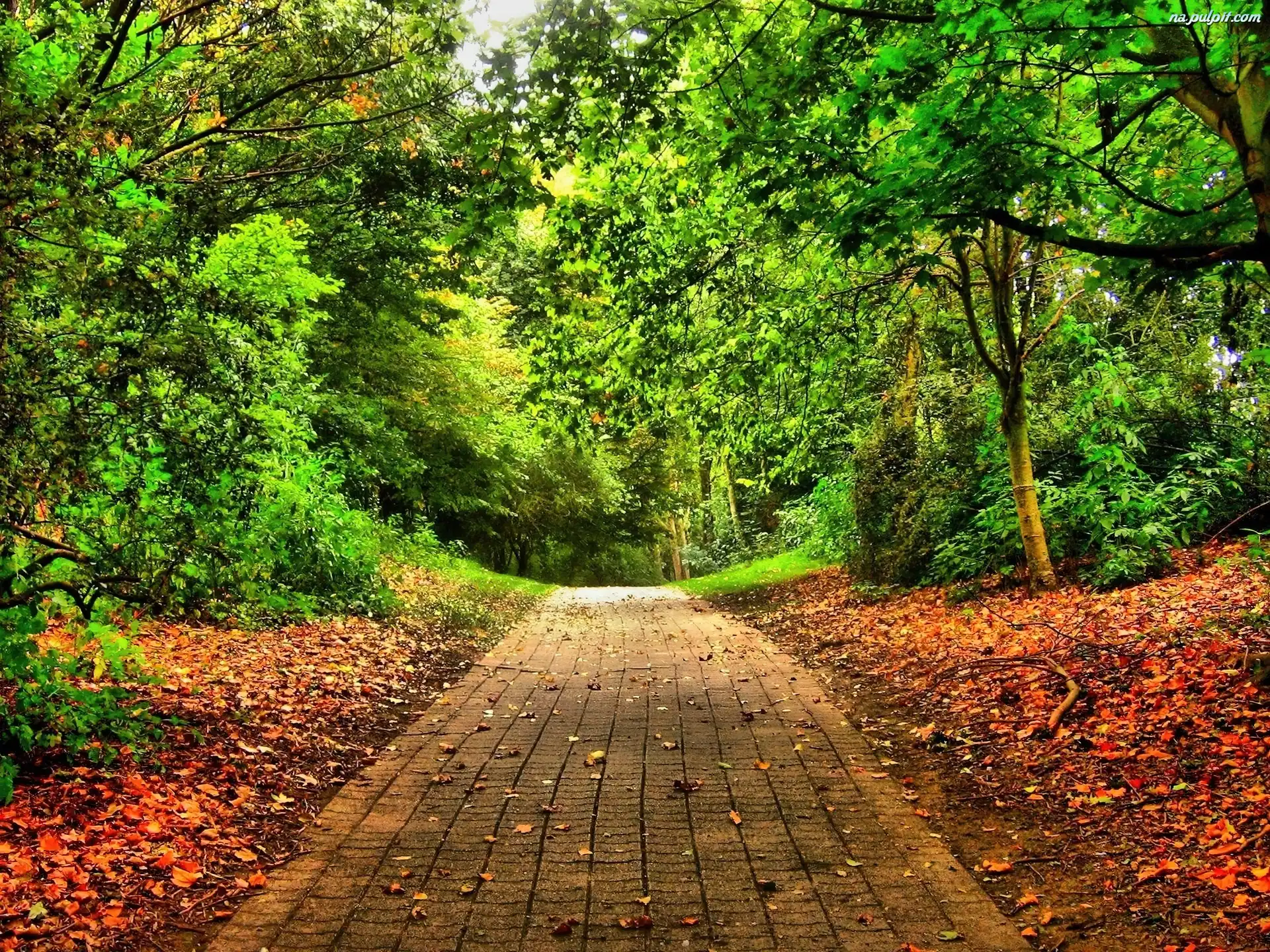 Liście, Park, Alejka, Drzewa Na Pulpit