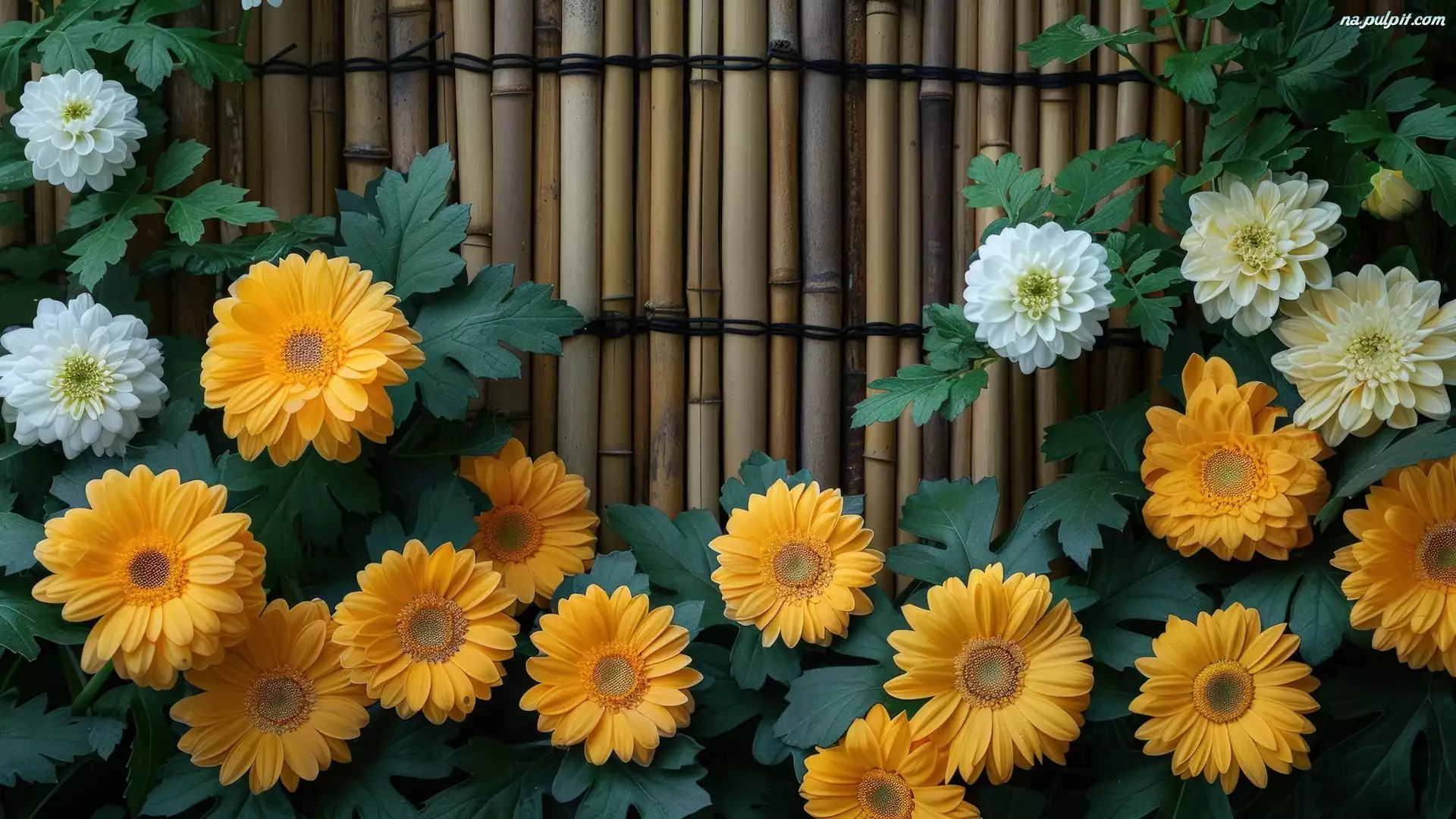 Białe, Żółte, Kwiaty, Liście Na Pulpit