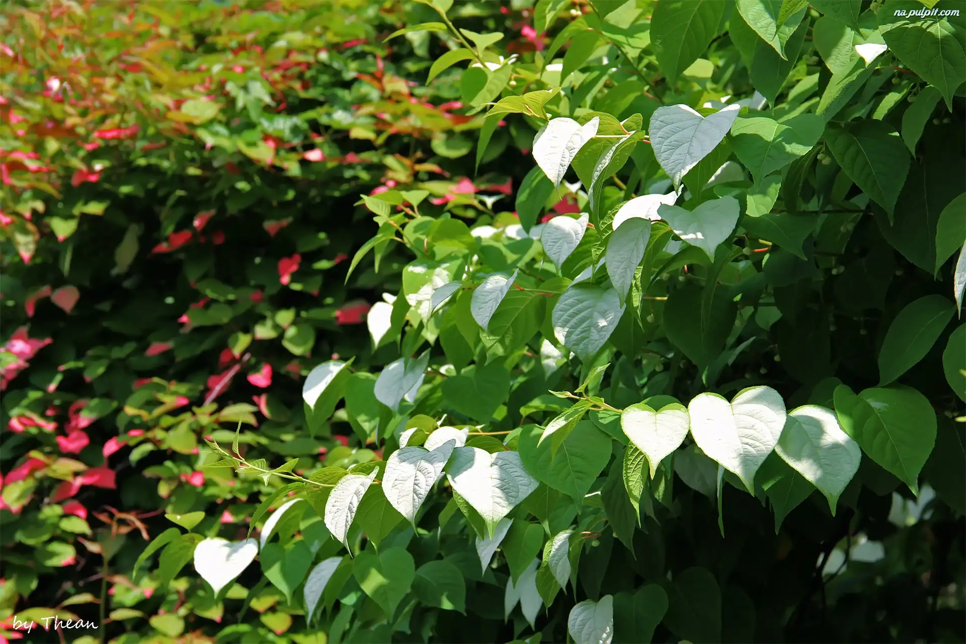 Liście, Zielone, Białe, Różowe