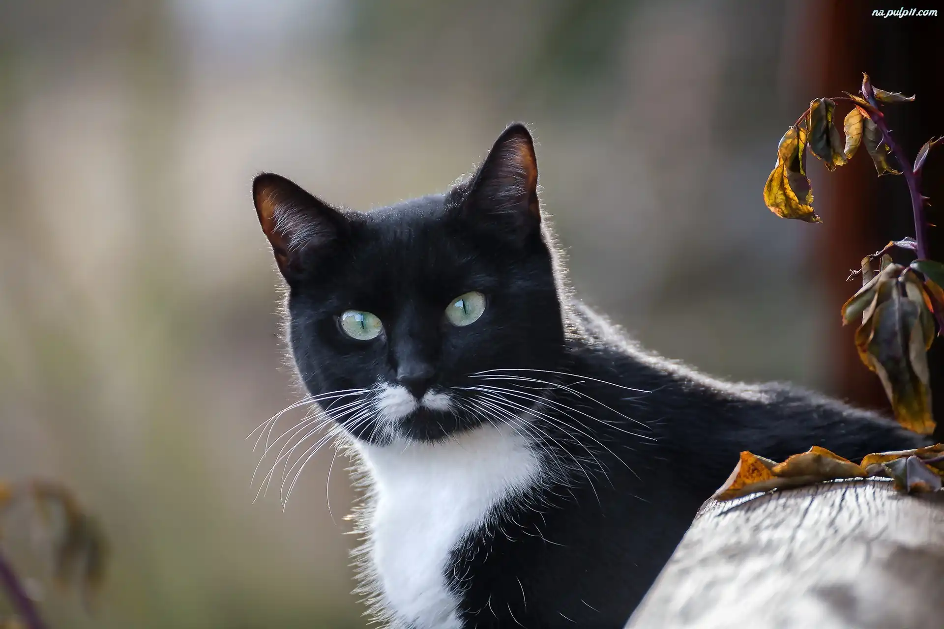Liście, Czarno-biały, Kot