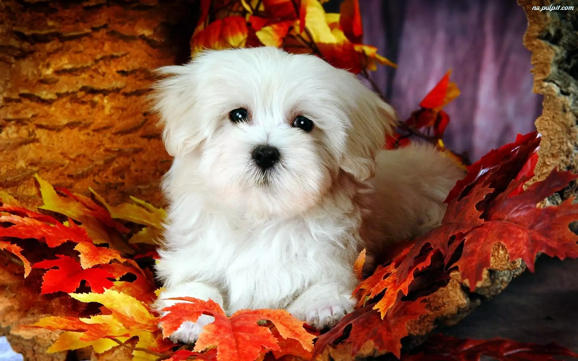 Liście, Piesek, Bichon Frise Na Pulpit
