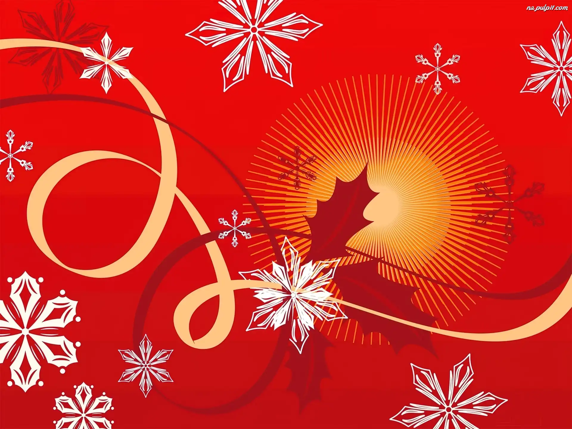 Liście, Płatki, Śniegu, Ostrokrzewu, Bombka, Wstążki Na Pulpit