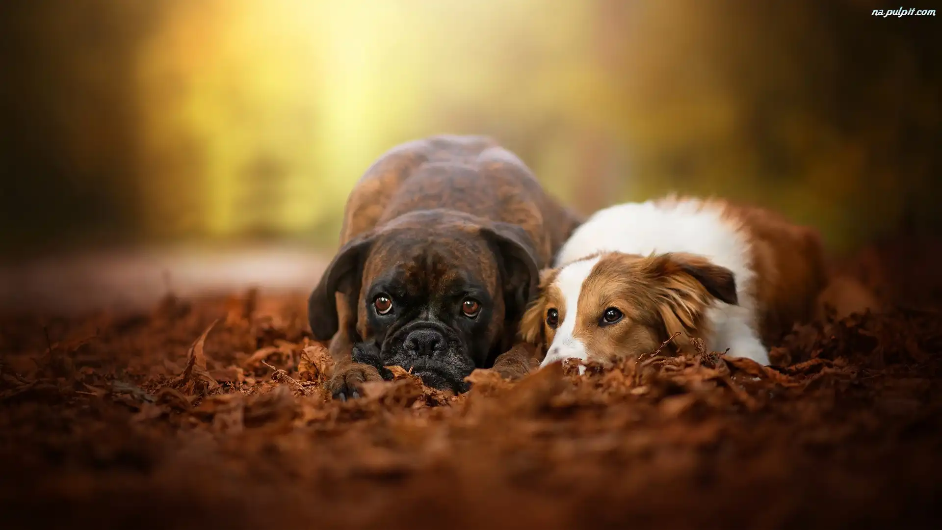 Liście, Bokser, Psy, Border collie Na Pulpit