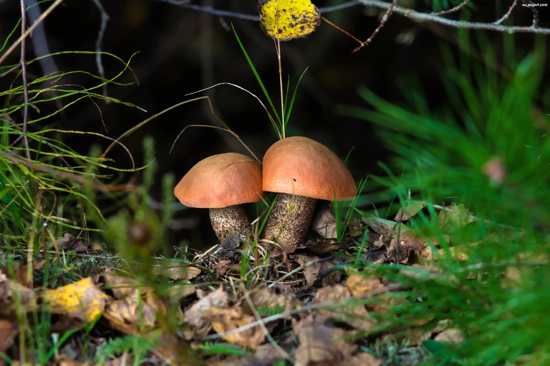 Liście, Grzyby, Dwa, Koźlarze czerwone, Trawa Na Pulpit
