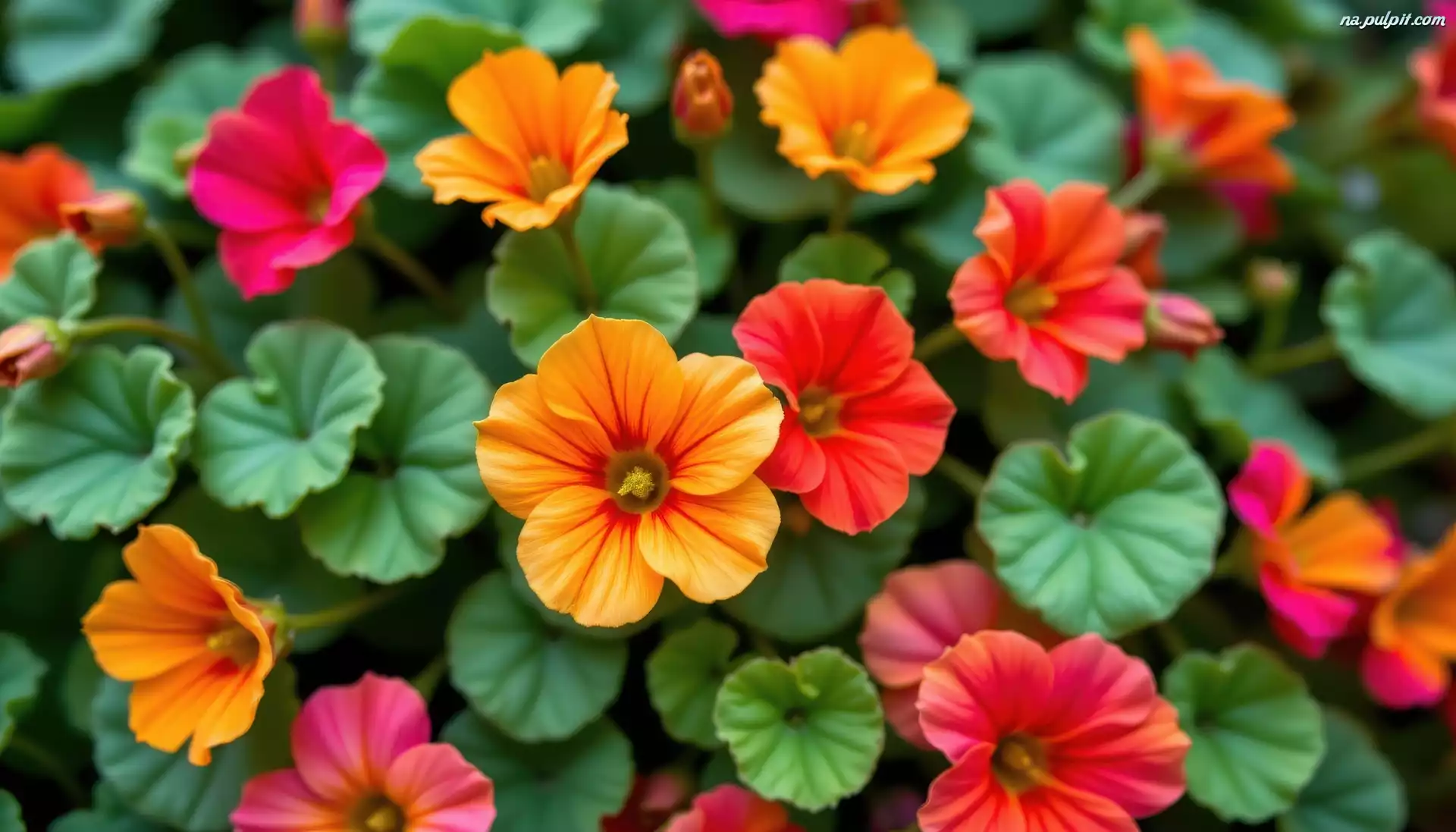 Czerwone, Pomarańczowe, Nasturcje, Liście