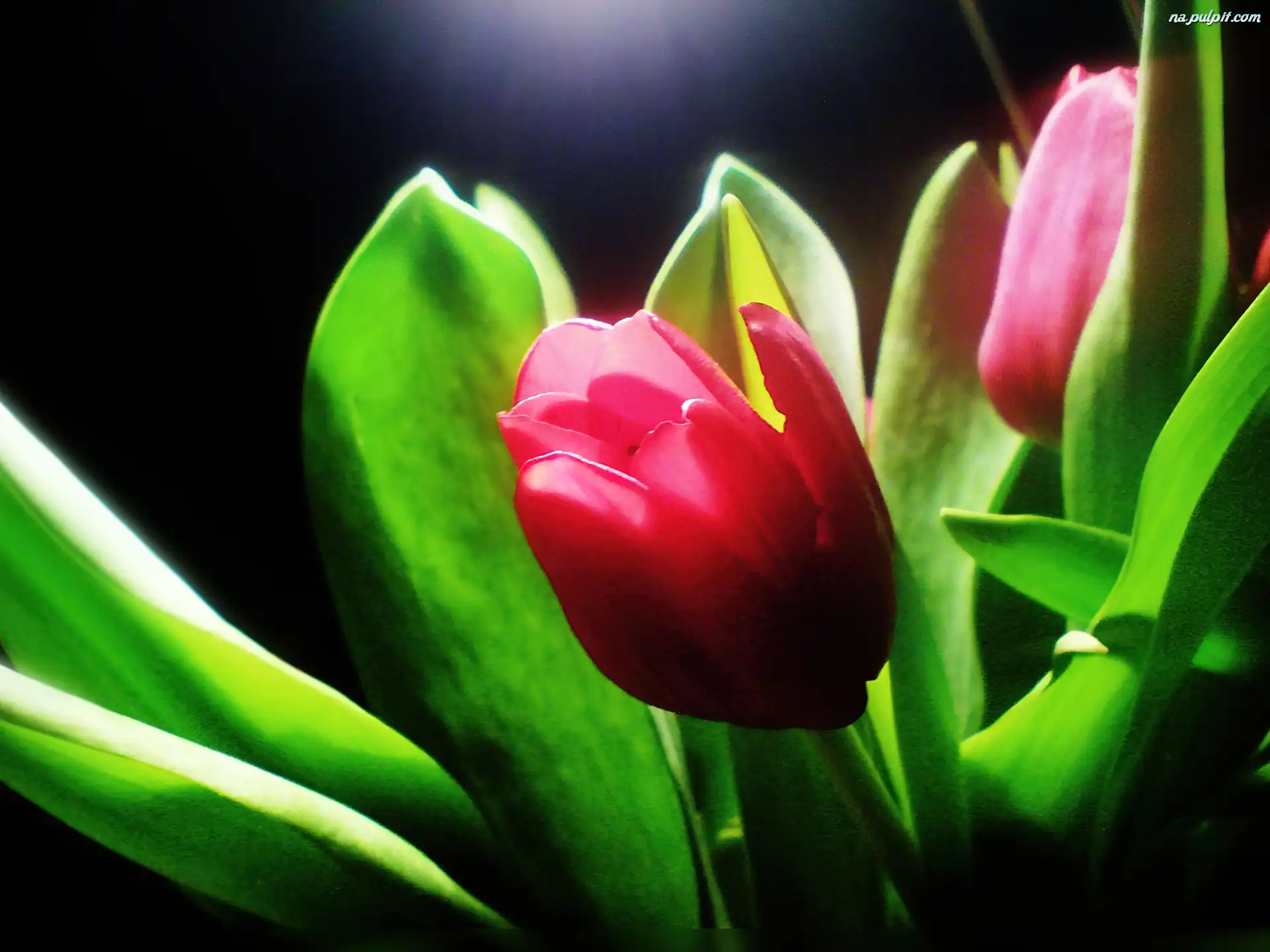 Liście, Tulipany, Czerwone, Zielone Na Pulpit